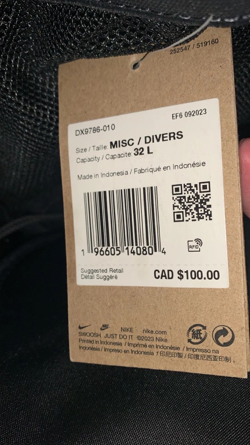 Large Nike backpack. Black with grey accents. Multiple compartments. Adjustable straps. Excellent condition.