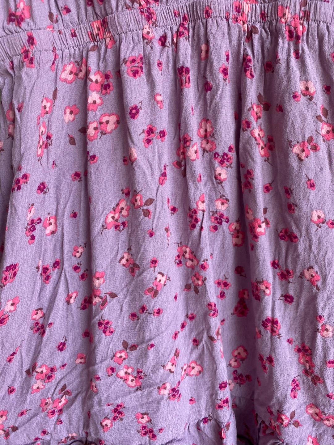 Floral print on lavender fabric.