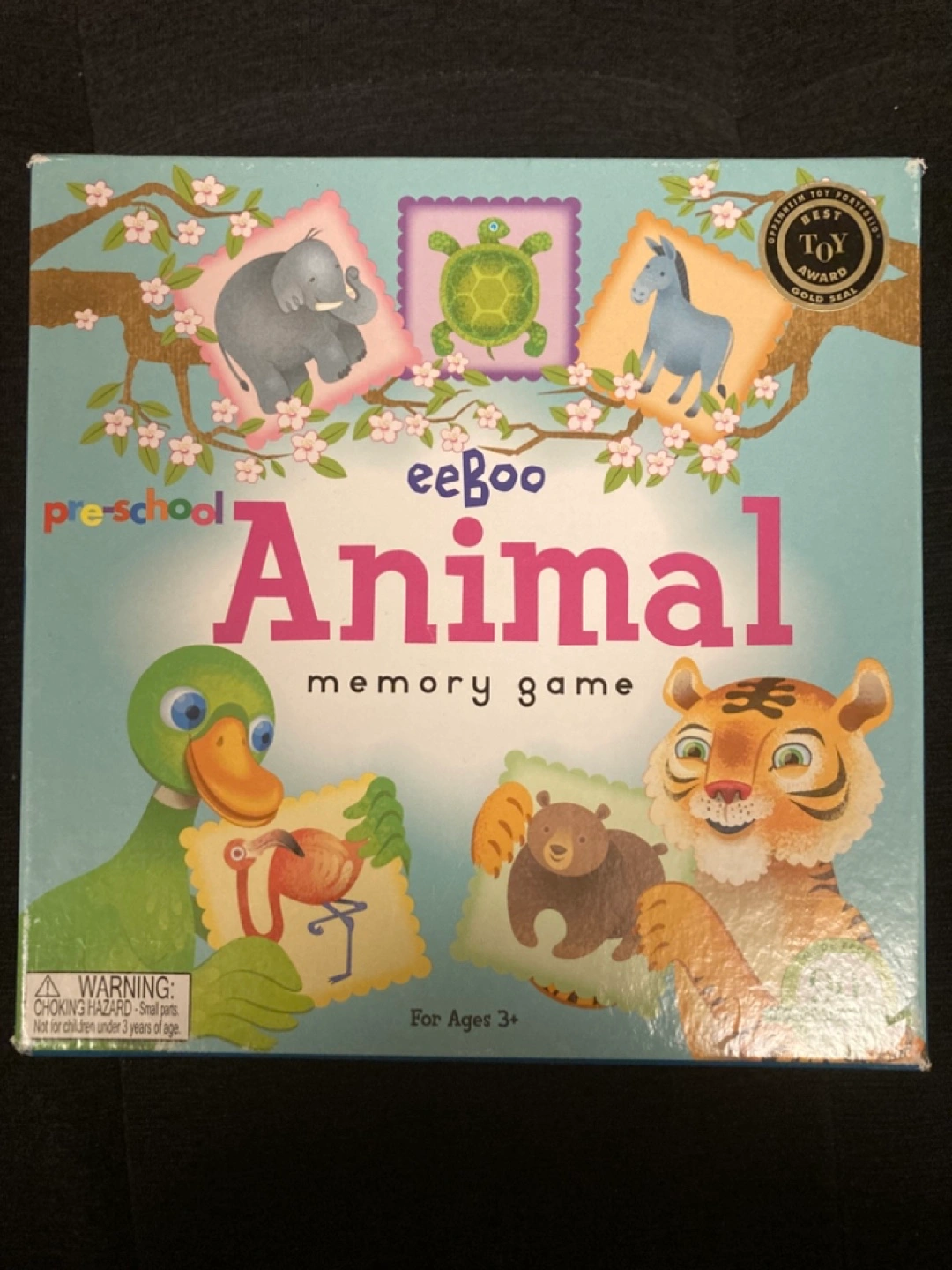 Classic matching game. Features friendly animals. Develops memory skills. For ages 3+. Includes game box and pieces. Like new.