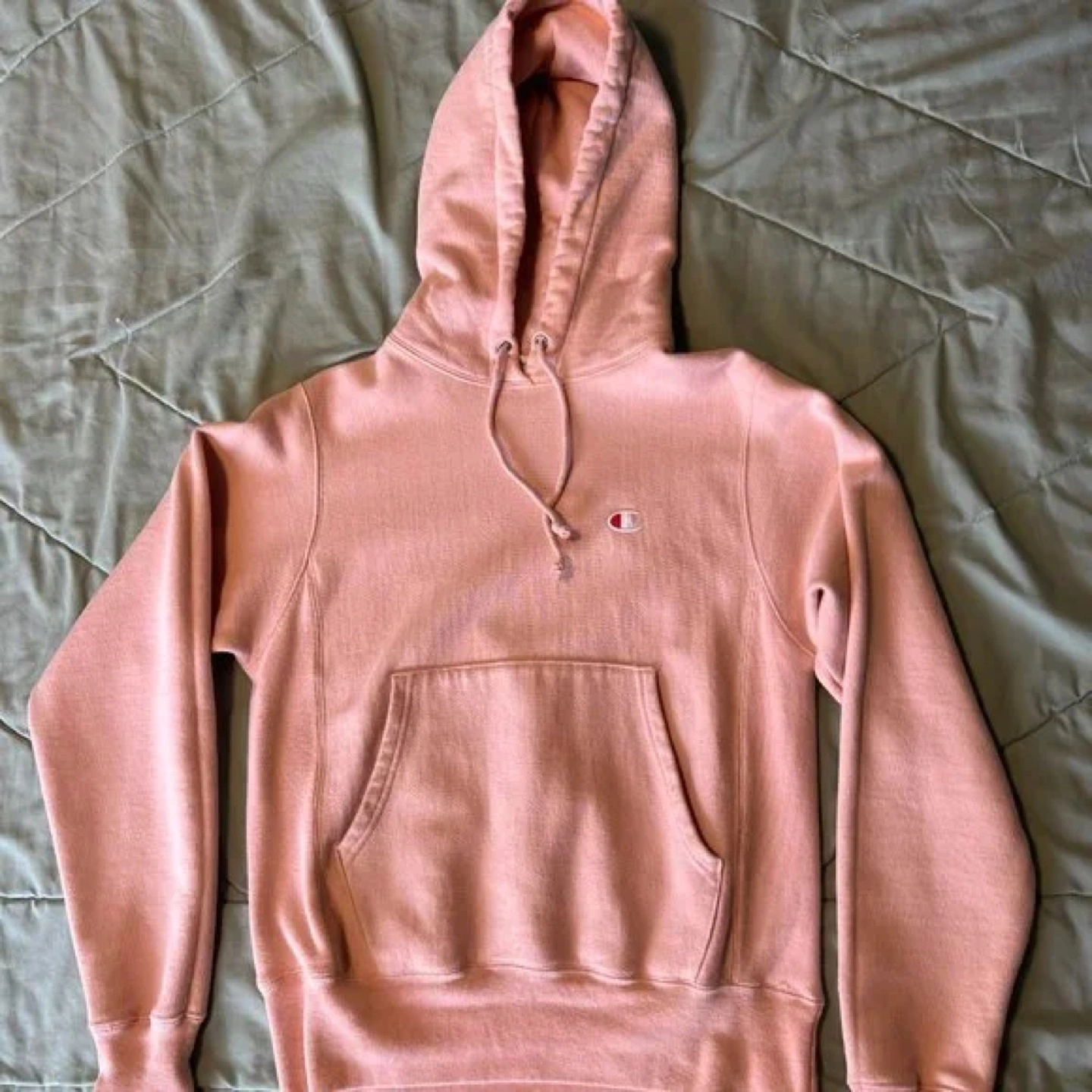 Women's small Champion reverse weave hoodie. Soft pink colour. Great condition. Features a kangaroo pocket and drawstring hood.
