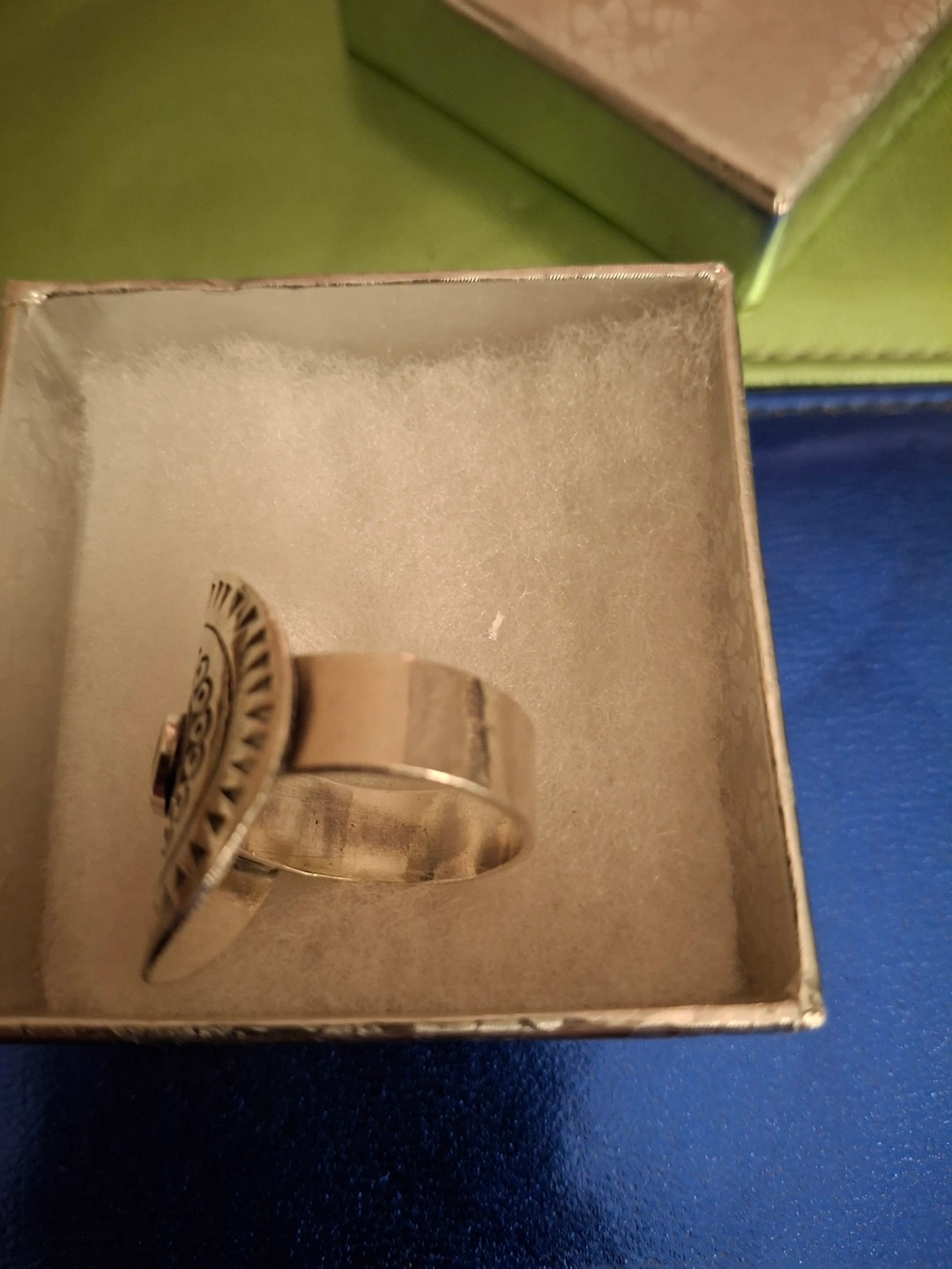 Large detailed ring with turquoise stone (stamped 925)