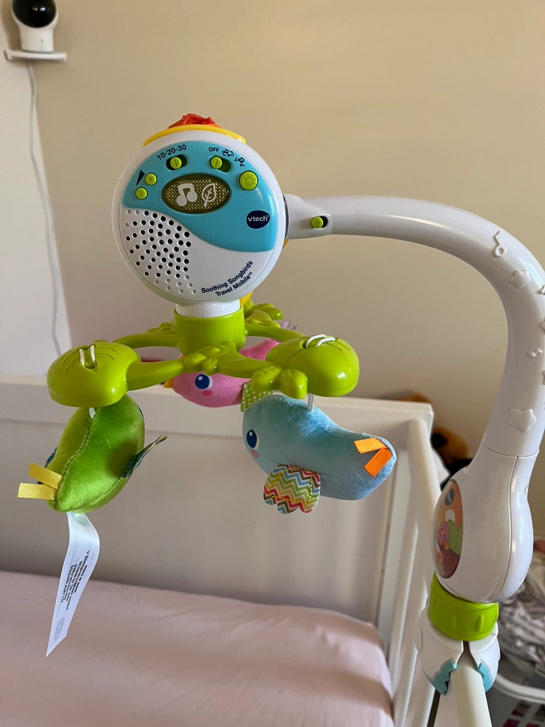 148Baby mobile with colourful birds. Features soothing sounds and music. Attaches easily to cribs and is ready for on the go use. Barely used. Can send video of mobile functioning. Cash or e-transfer. Will deliver for additional charge.