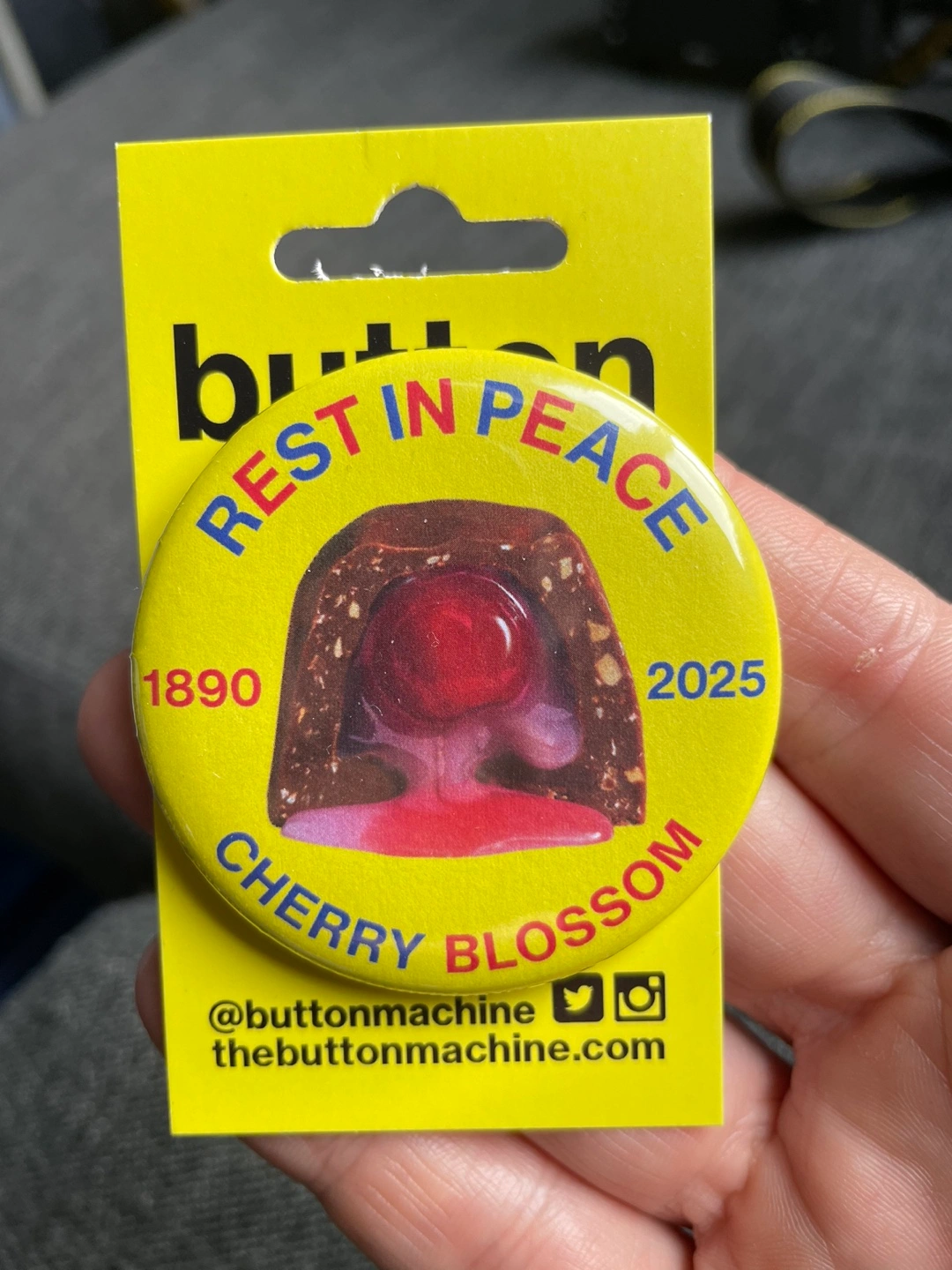 Cherry Blossom Chocolate Candy Rest in Peace Button Pin π