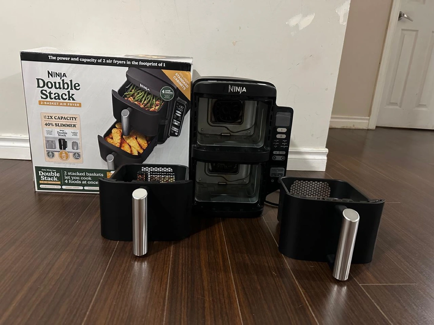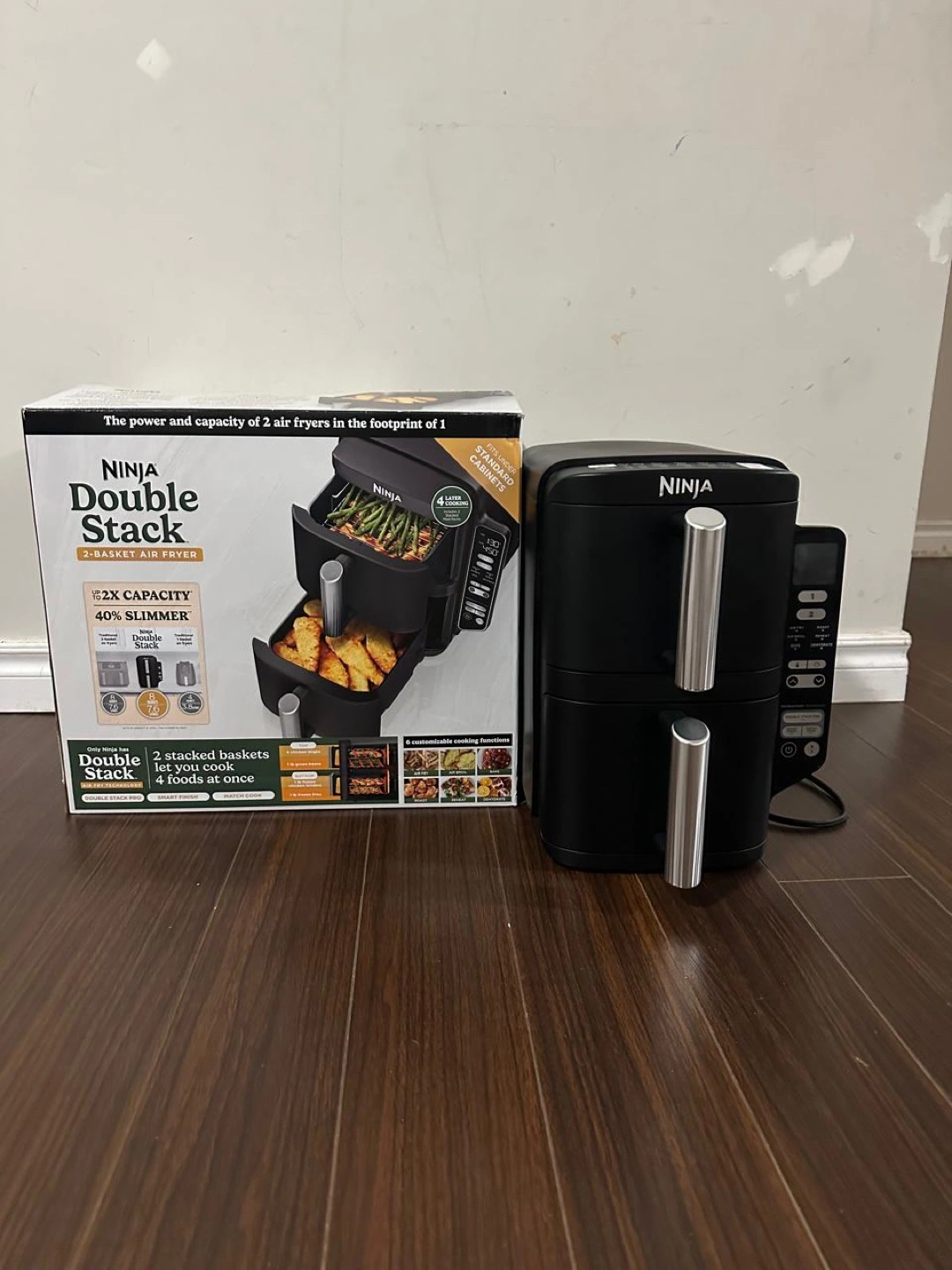 Like new in box. Double stacked baskets. Cook four foods at once. 40% slimmer. 2X capacity. Used less than 5 times. No issues . Retails at 249+ taxes . Selling due to moving.