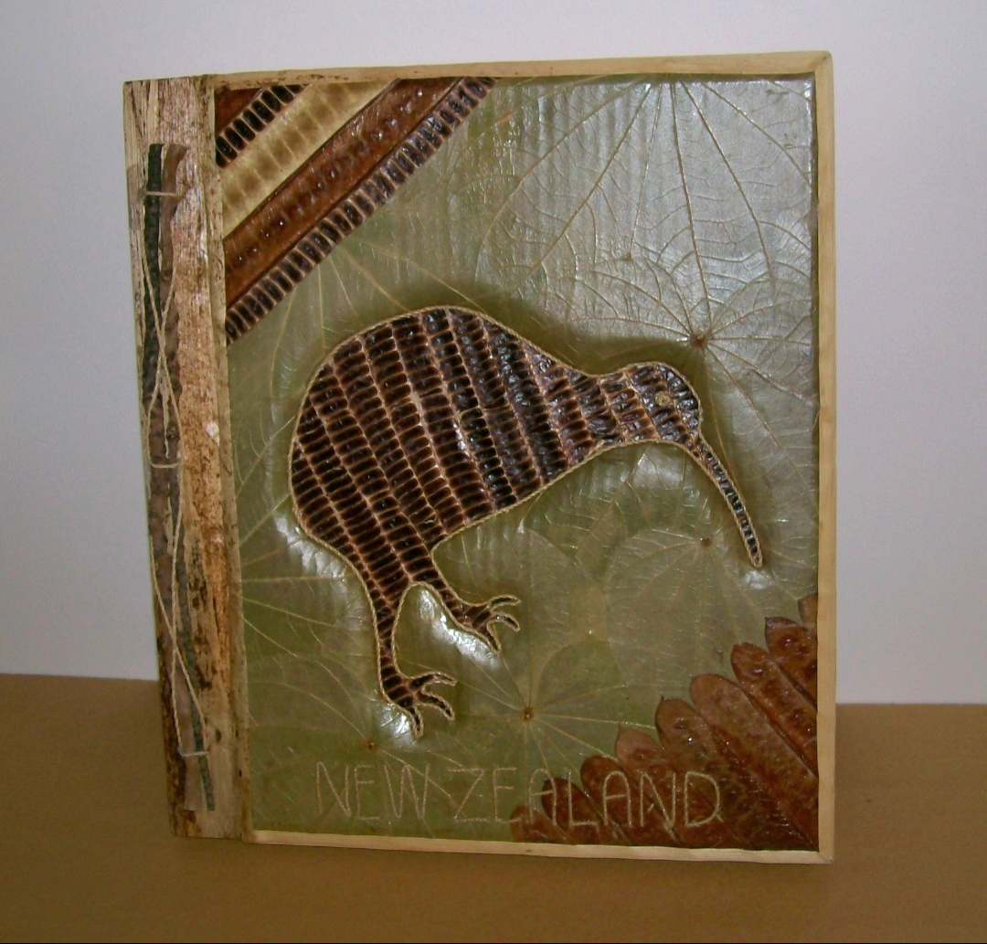 Treasure your memories for years to come in this unique, brand new, handcrafted New Zealand made photo album. The Kiwi cover is made with natural leaf, and the quality handcrafted paper is made from renewable plant resources.