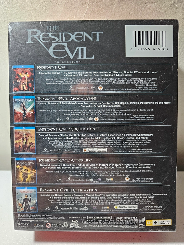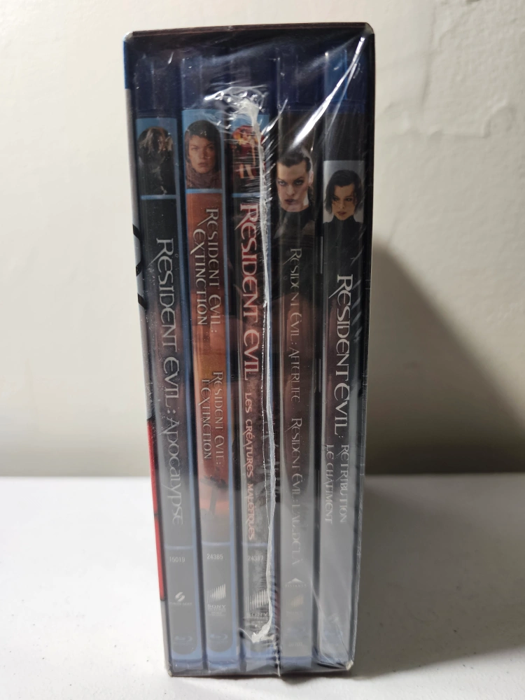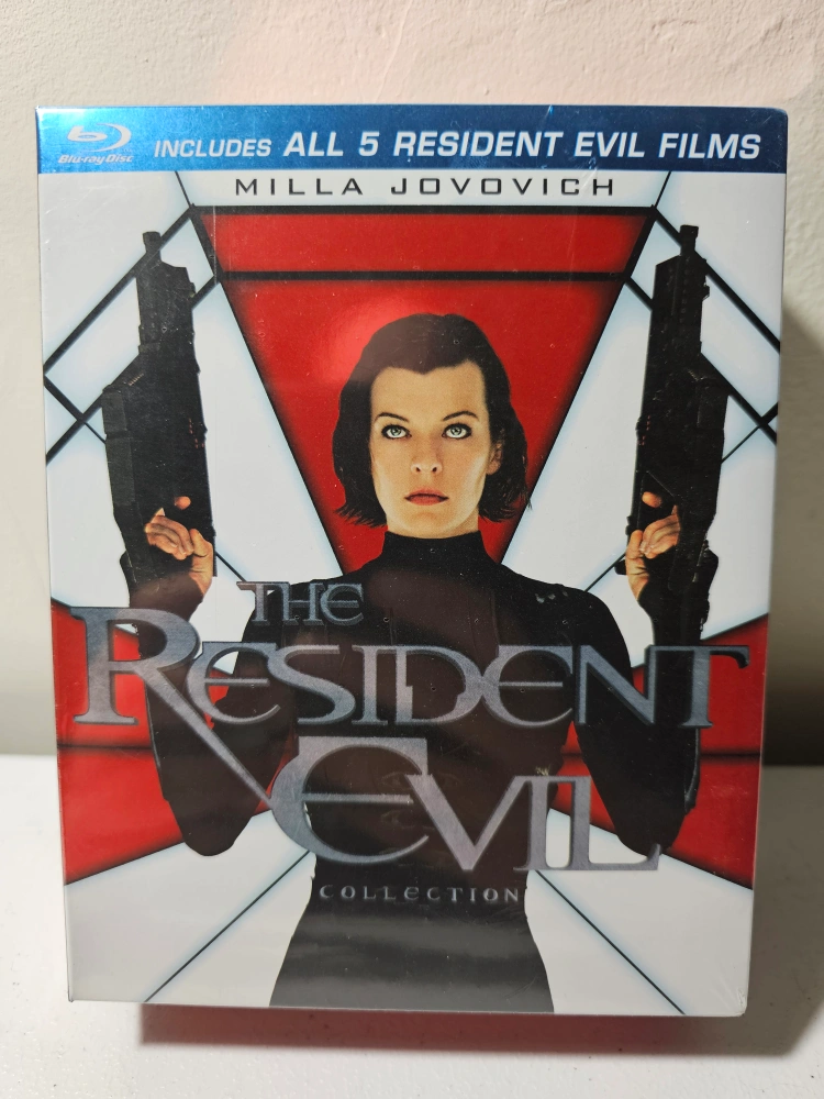 137Blu-ray collection featuring all five Resident Evil films. Milla Jovovich stars. Includes special features and deleted scenes. New and sealed.