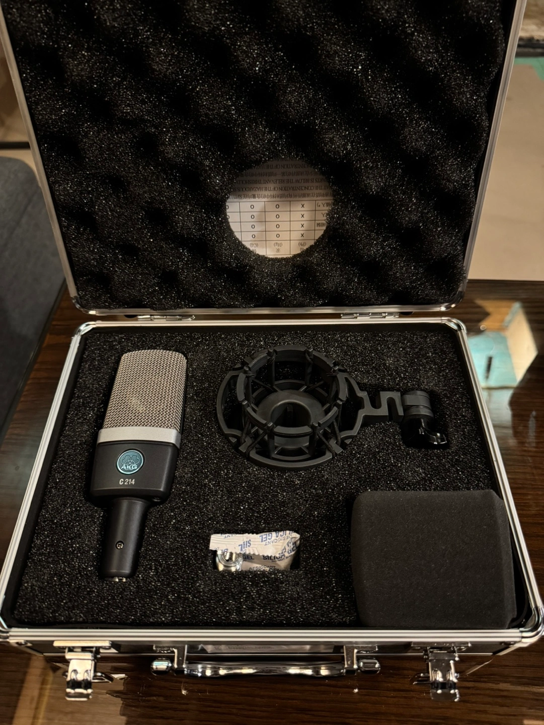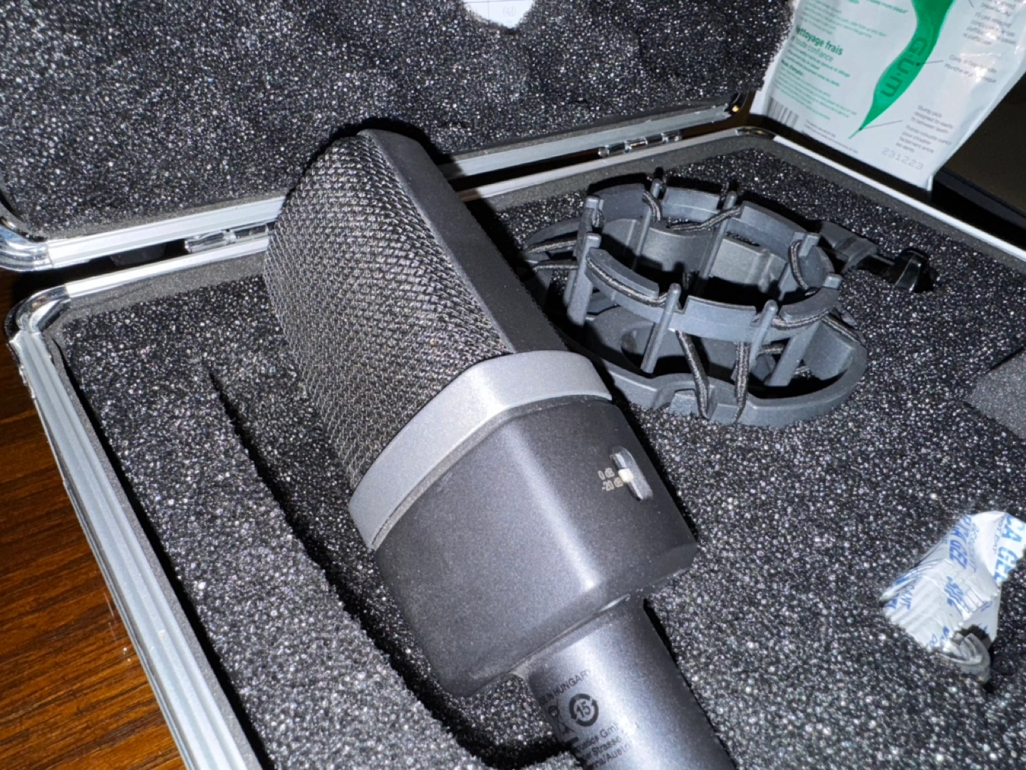 Large-diaphragm condenser microphone. Includes shock mount, carrying case, and accessories. Great for studio recording and vocal applications.