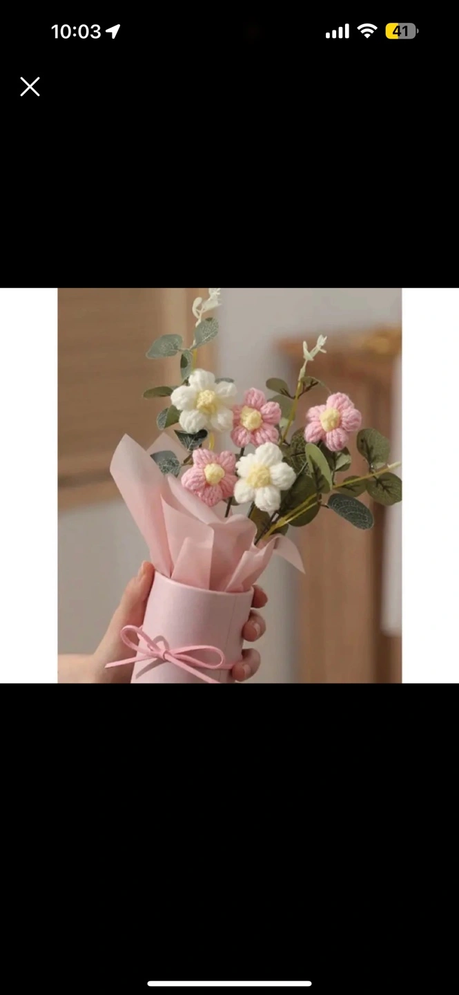 Cute handmade crocheted flowers. Pink and white blossoms. Arranged in a pink paper cylinder. Perfect gift or home dรฉcor.