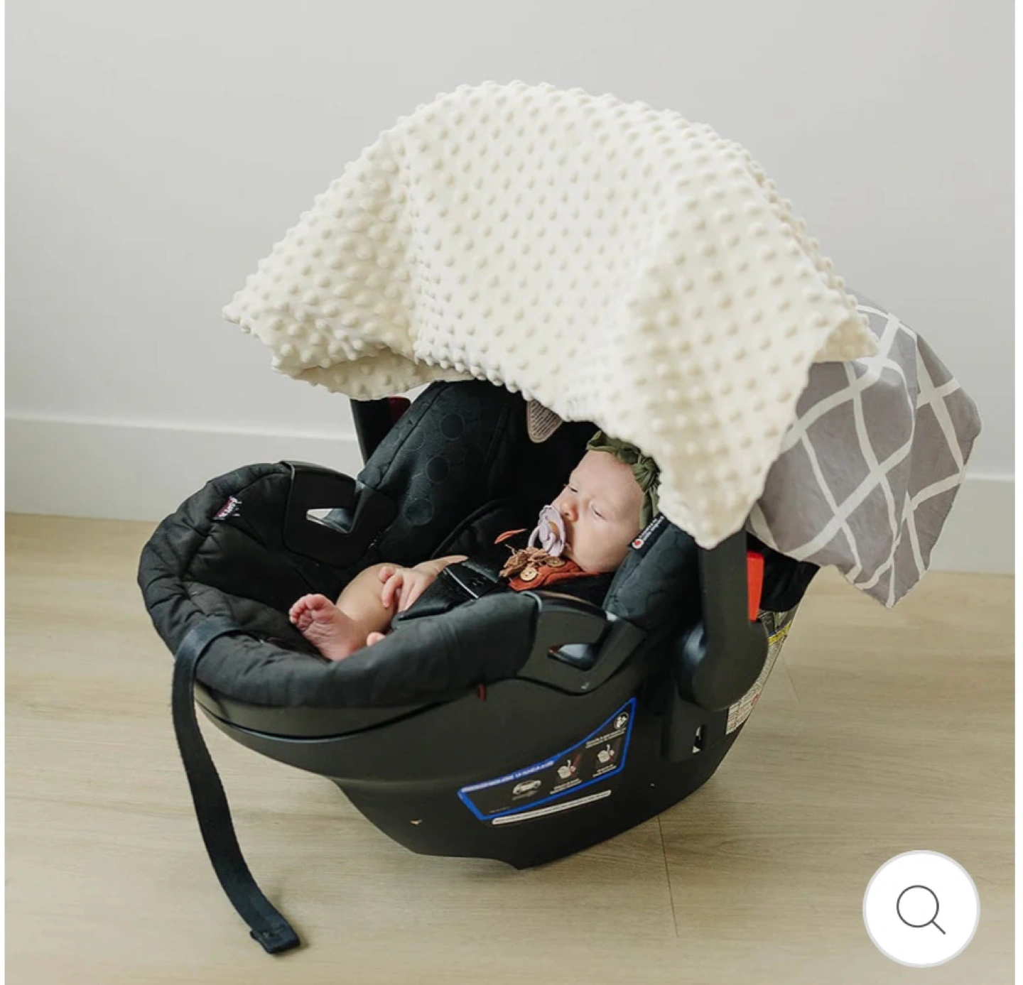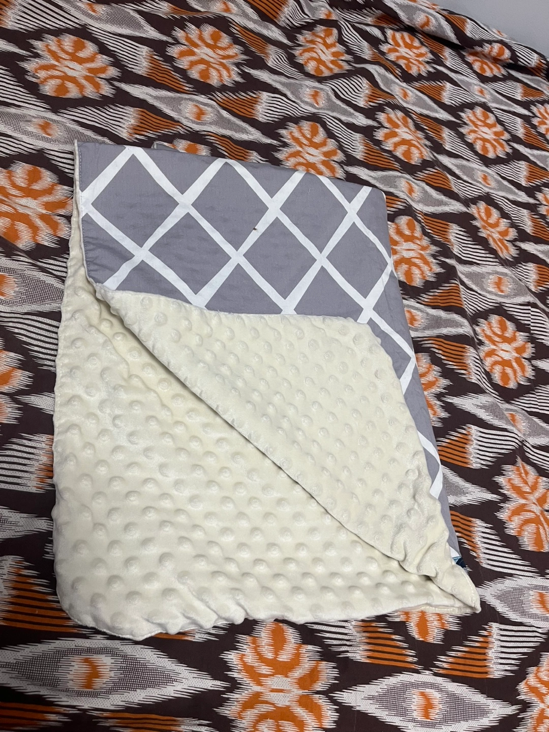 Grey and white diamond pattern. Soft and cozy. Double-sided. Perfect for sun protection and privacy. Gently used.