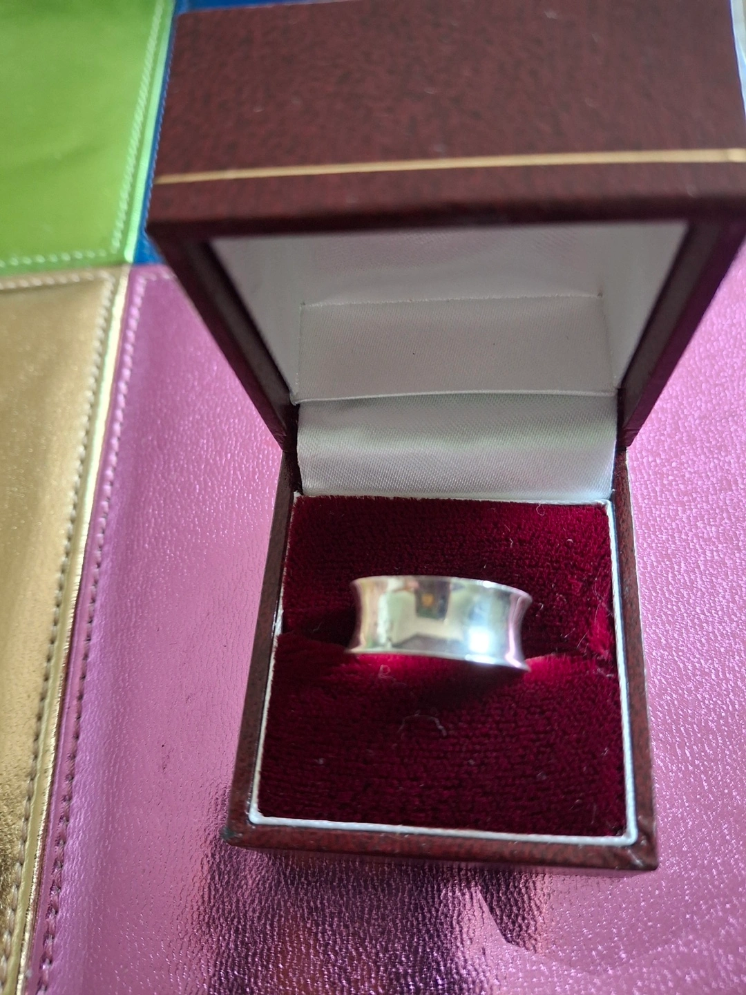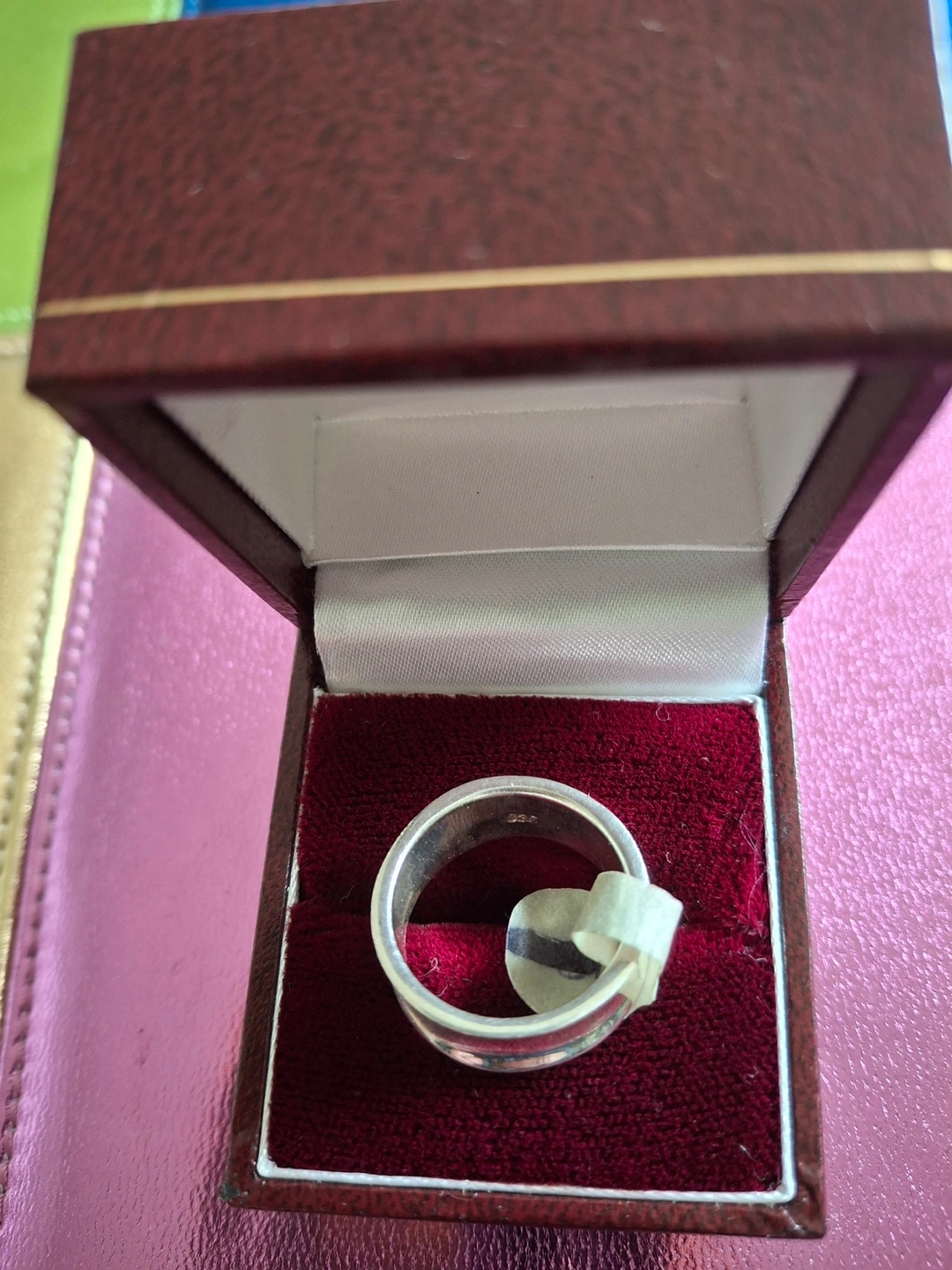Silver band with lip, stamped 925. Size 6 3/4. Never worn, with tag. Available for pickup in Markland Wood.