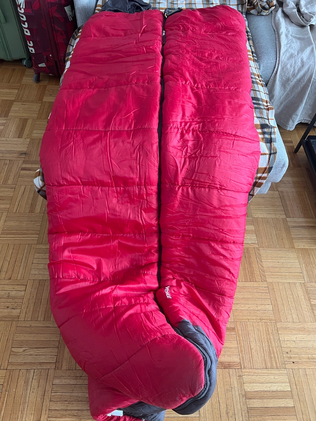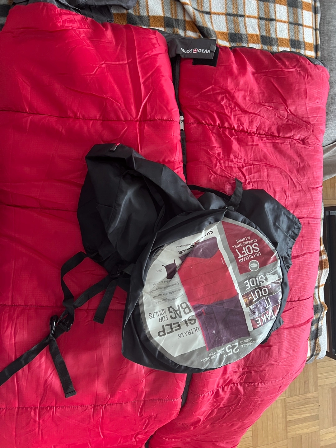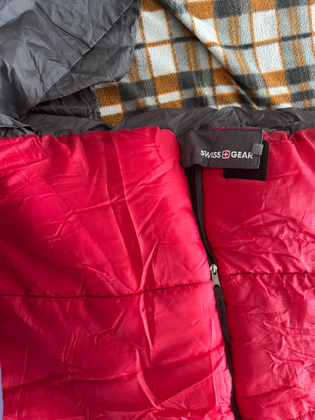 Swiss gear Red and grey sleeping bag. Zipper closure. Compact storage. Good for adults. Excellent for camping. Great condition.