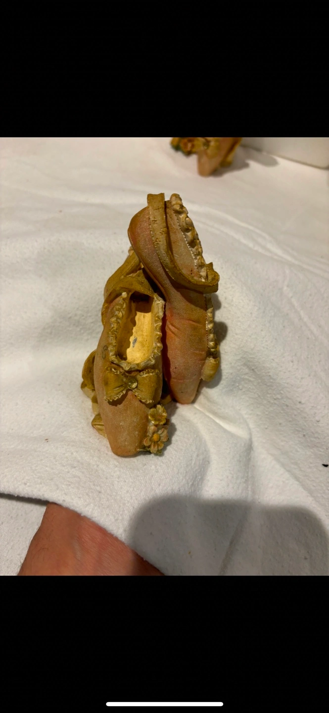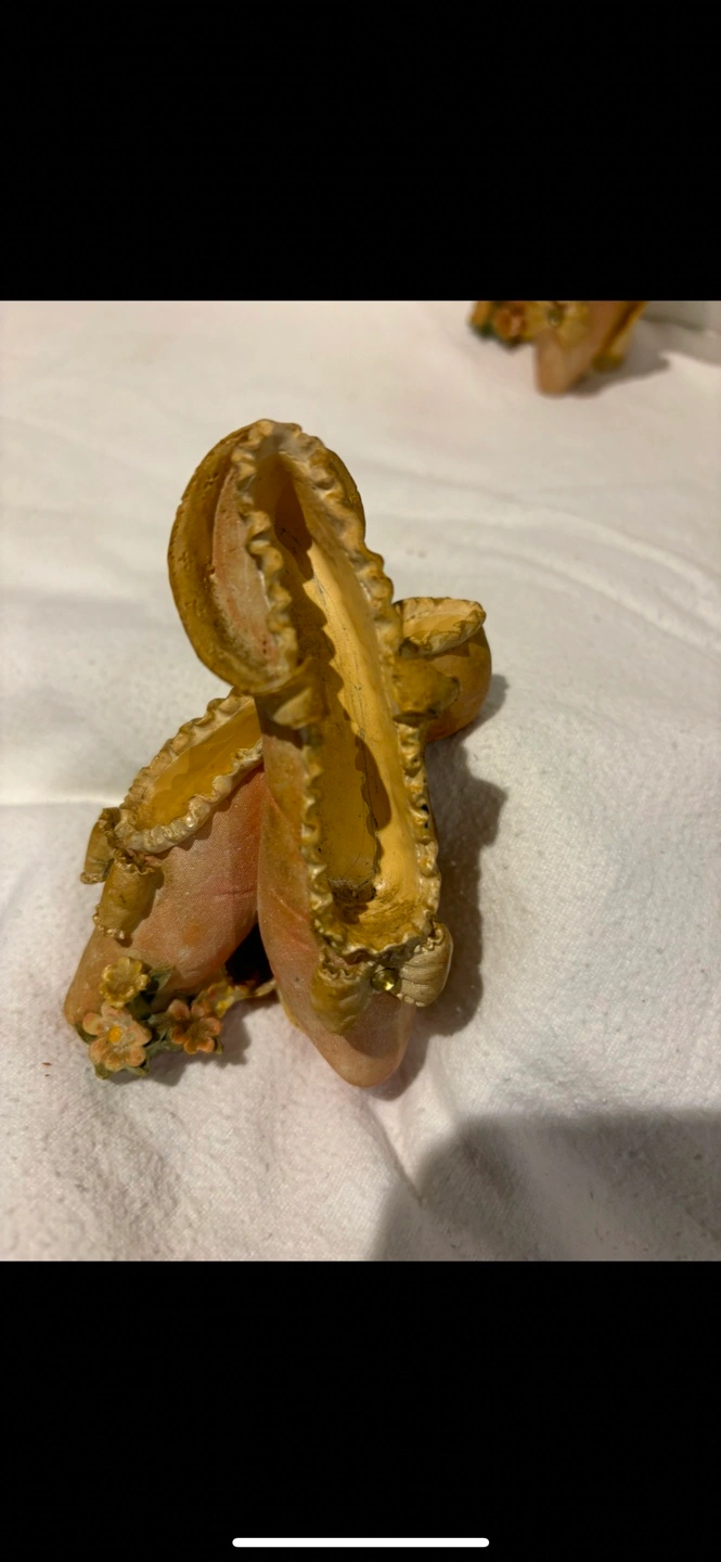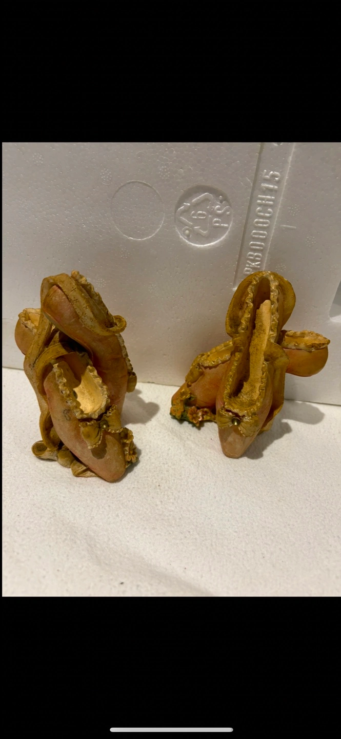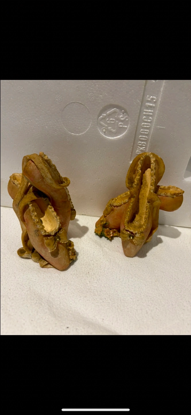 376Adorable pair of ballerina slipper figurines. Detailed design, pale pink colour with gold accents. Perfect for shelf decor or a ballet lover's collection. Smoke free pet free home Pick up can be Rathburn and the west mall area Or Symington and DuPont