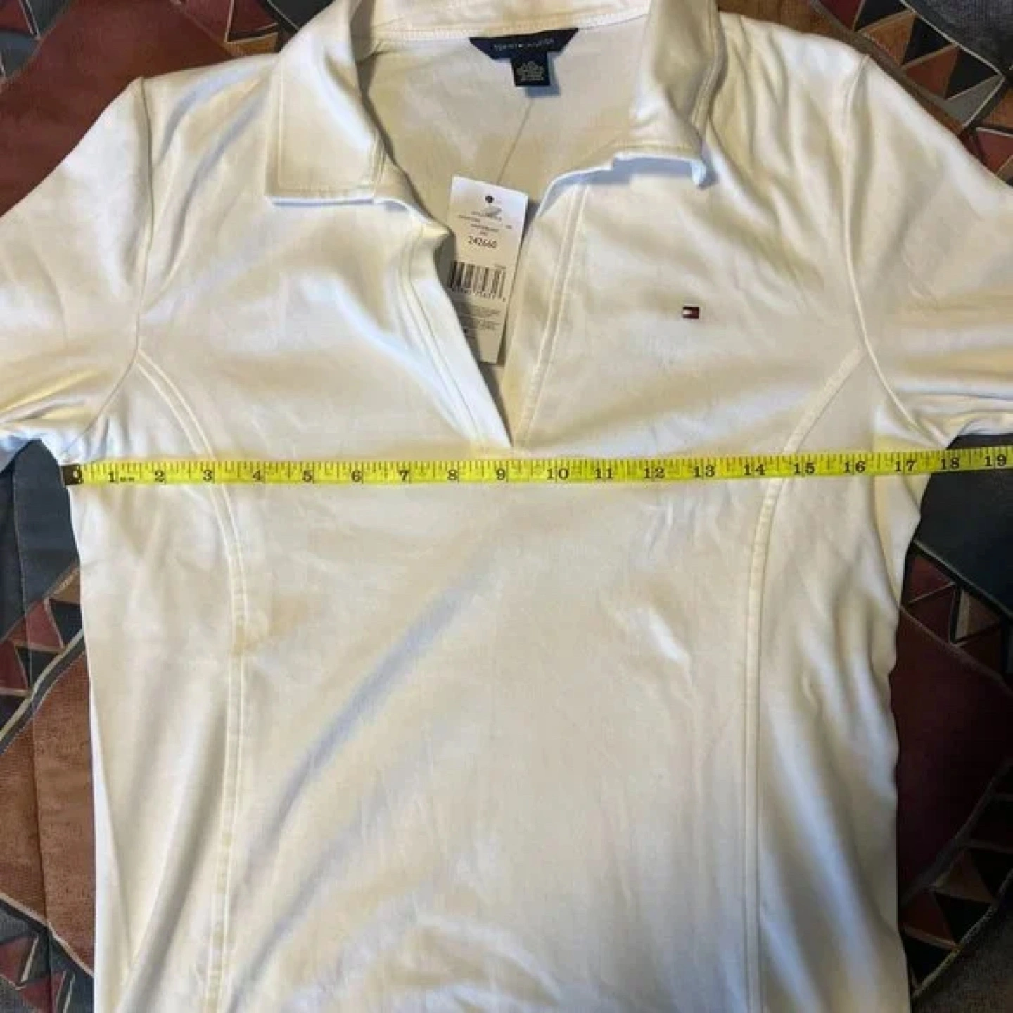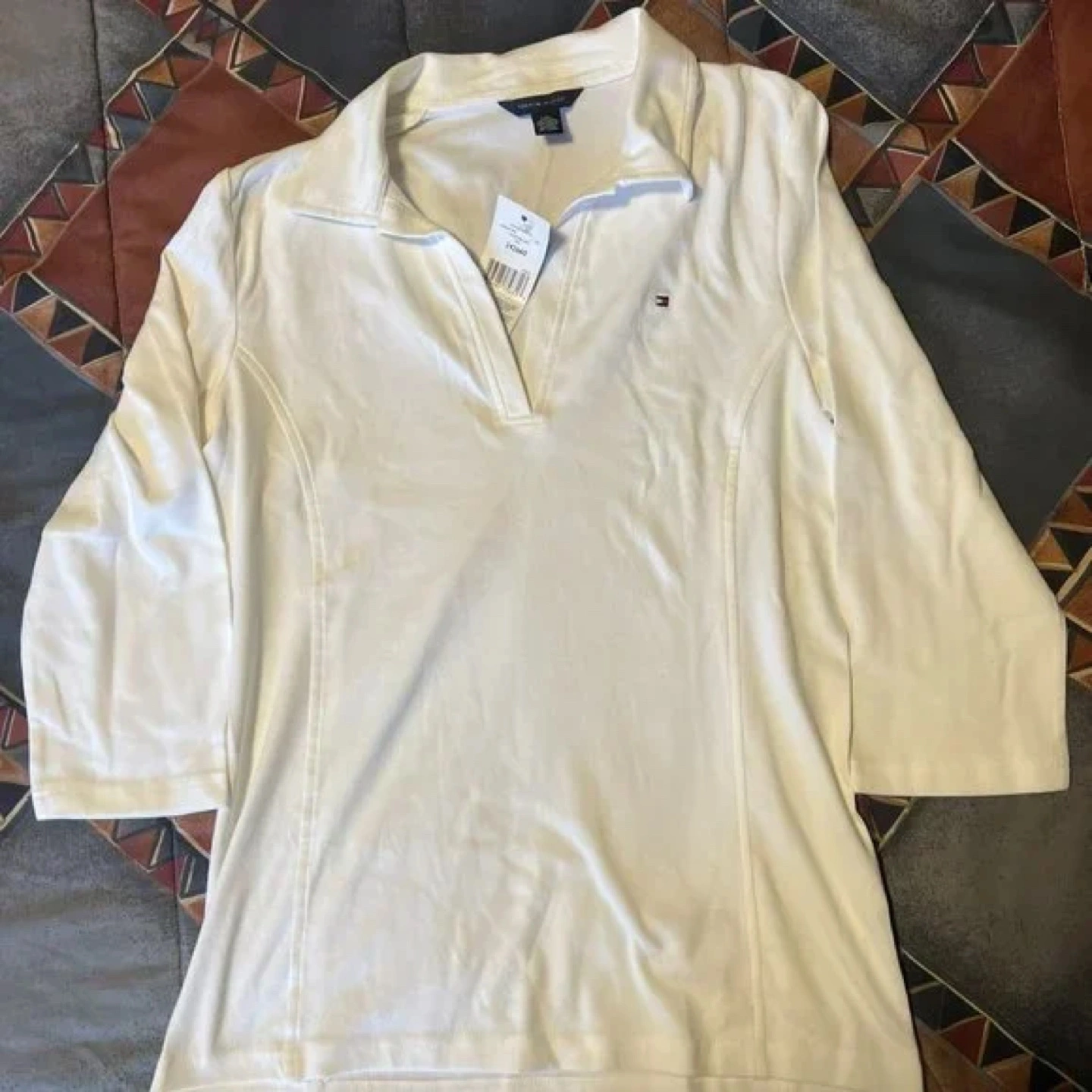 Women's white collared shirt. Three-quarter sleeves. Slim fit. Tommy Hilfiger brand. New with tags.