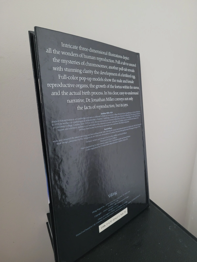 857Stunning book. Intricate three-dimensional illustrations. Pull a tab and unveil mysteries of human reproduction. Full-color clarity shows fertilized egg development. Male and female reproductive organs. Growth within the uterus. Actual birth process. Easy-to-understand narrative. Jonathan Miller and David Pelham authors.
