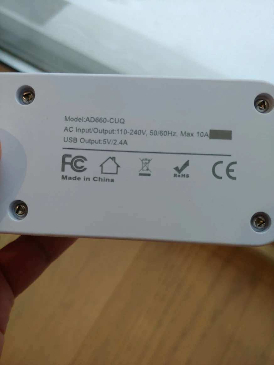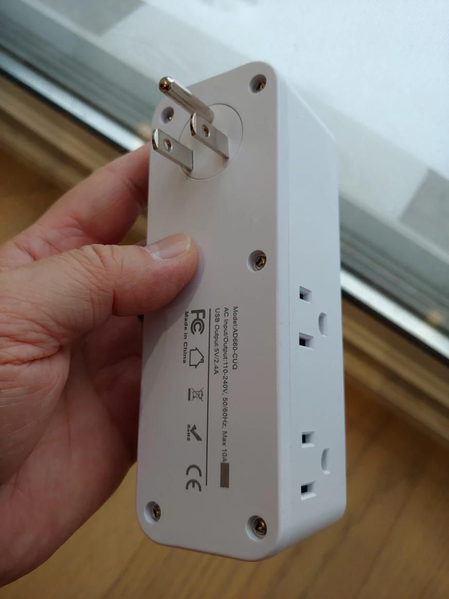 110-240V input, can support 10A current. USB output 5V/2.4A Each