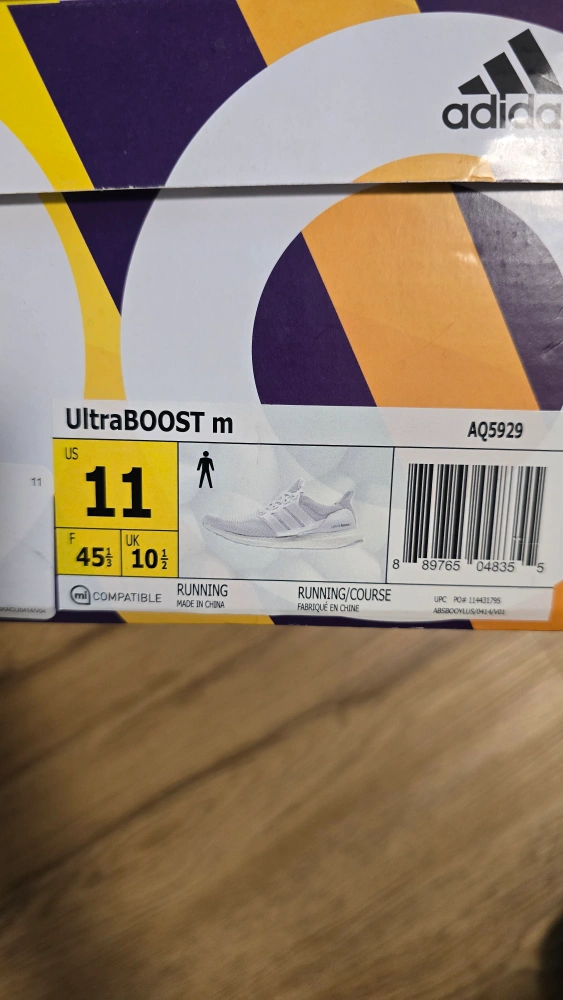Adidas Ultraboost running shoes. Men's size US 11. White colour. Primeknit upper. Boost midsole. Continental rubber outsole. Excellent cushioning and support. Great for running or everyday wear.