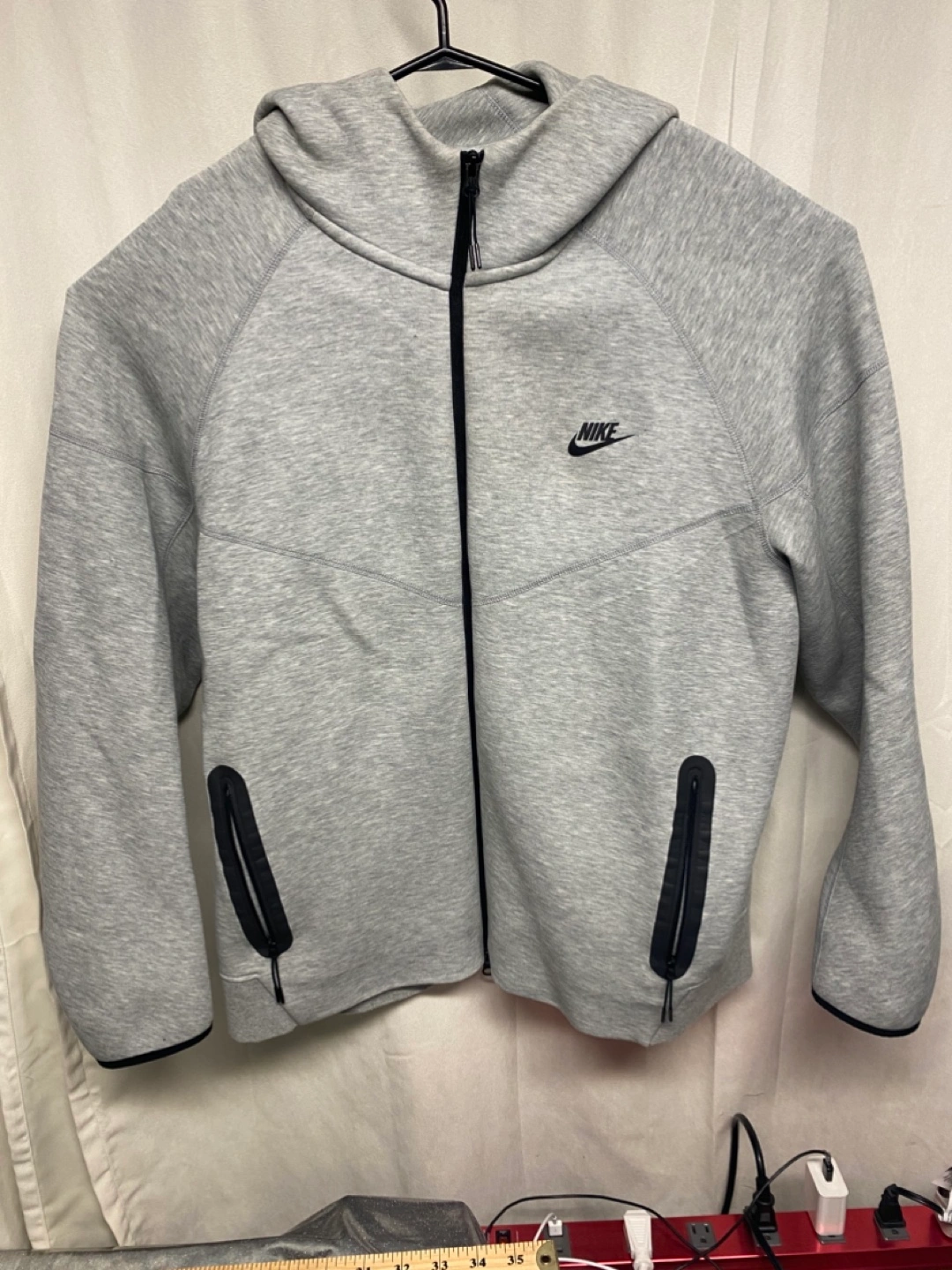 Men's Nike Tech Fleece hoodie. Grey colour. Full-zip closure. Size XXL. Features side pockets.