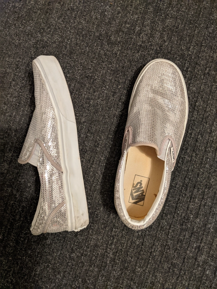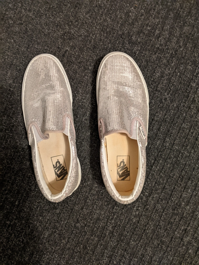Pair of silver sequin Vans slip-on shoes. Great for parties or special occasions. Absolutely like new