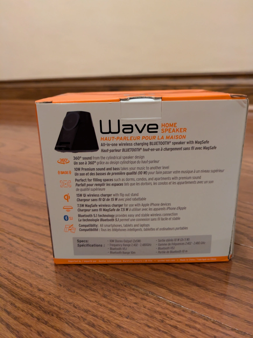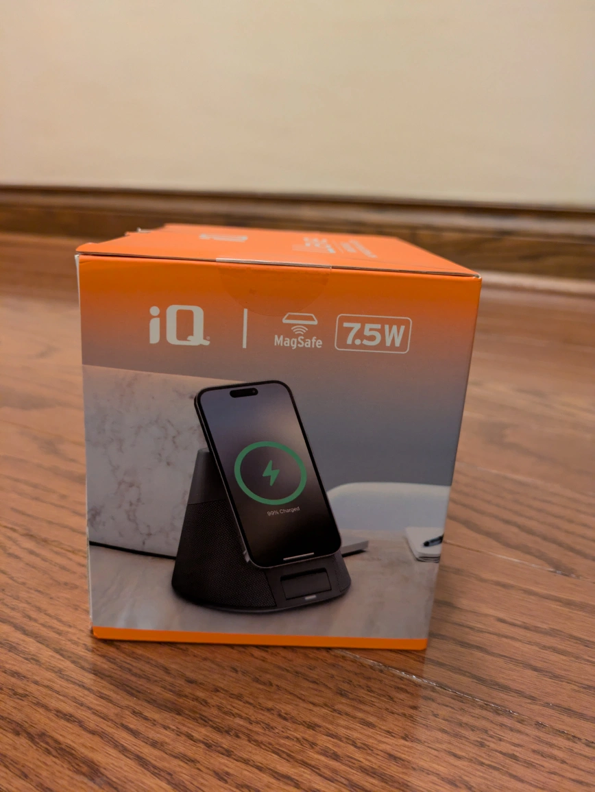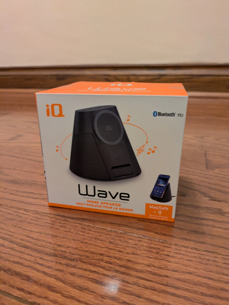 Wireless Bluetooth speaker. Features 360° sound and MagSafe wireless charging. Compact design, perfect for any room. Includes 7.5W and 15W charging options.