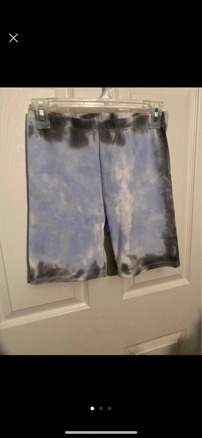 Garage - Women's biker shorts. Blue and grey tie-dye pattern. Size small. 95% cotton, 5% elastane.
