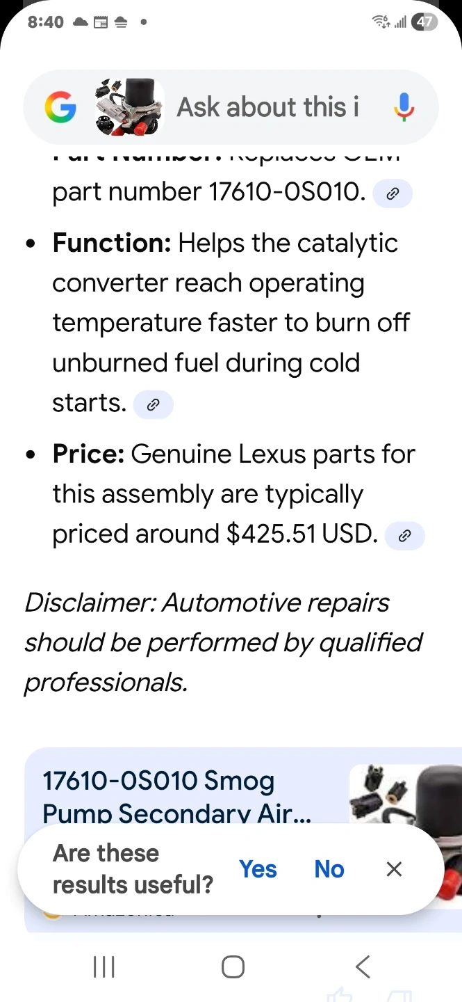 Secondary Air Injection Pump for Toyota Lexus 2007-2013