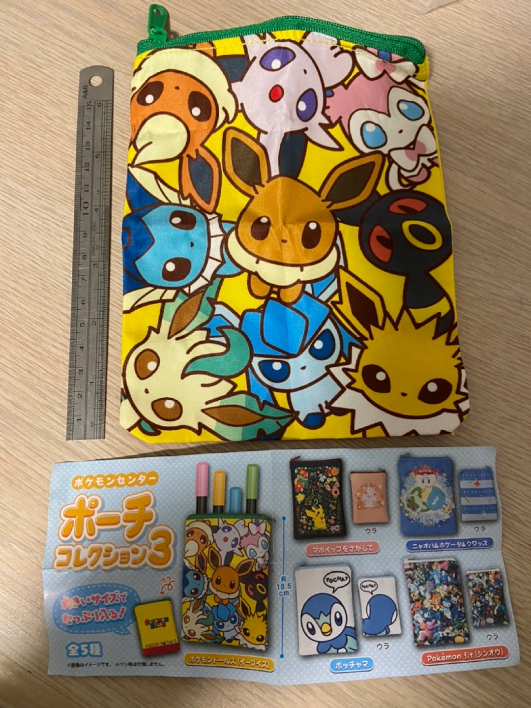 Cute Pokemon pouch with zipper. Gachapon item from Japan. Features the Eeveeloution. Small size, perfect for small items.