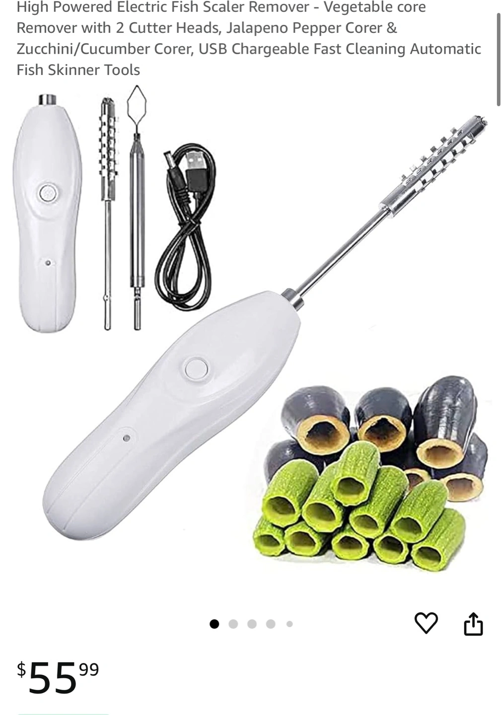 NEW Portable electric fish scaler and fruit corer. Rechargeable via USB. Includes multiple attachments. Great for quick and easy fish cleaning and fruit preparation.