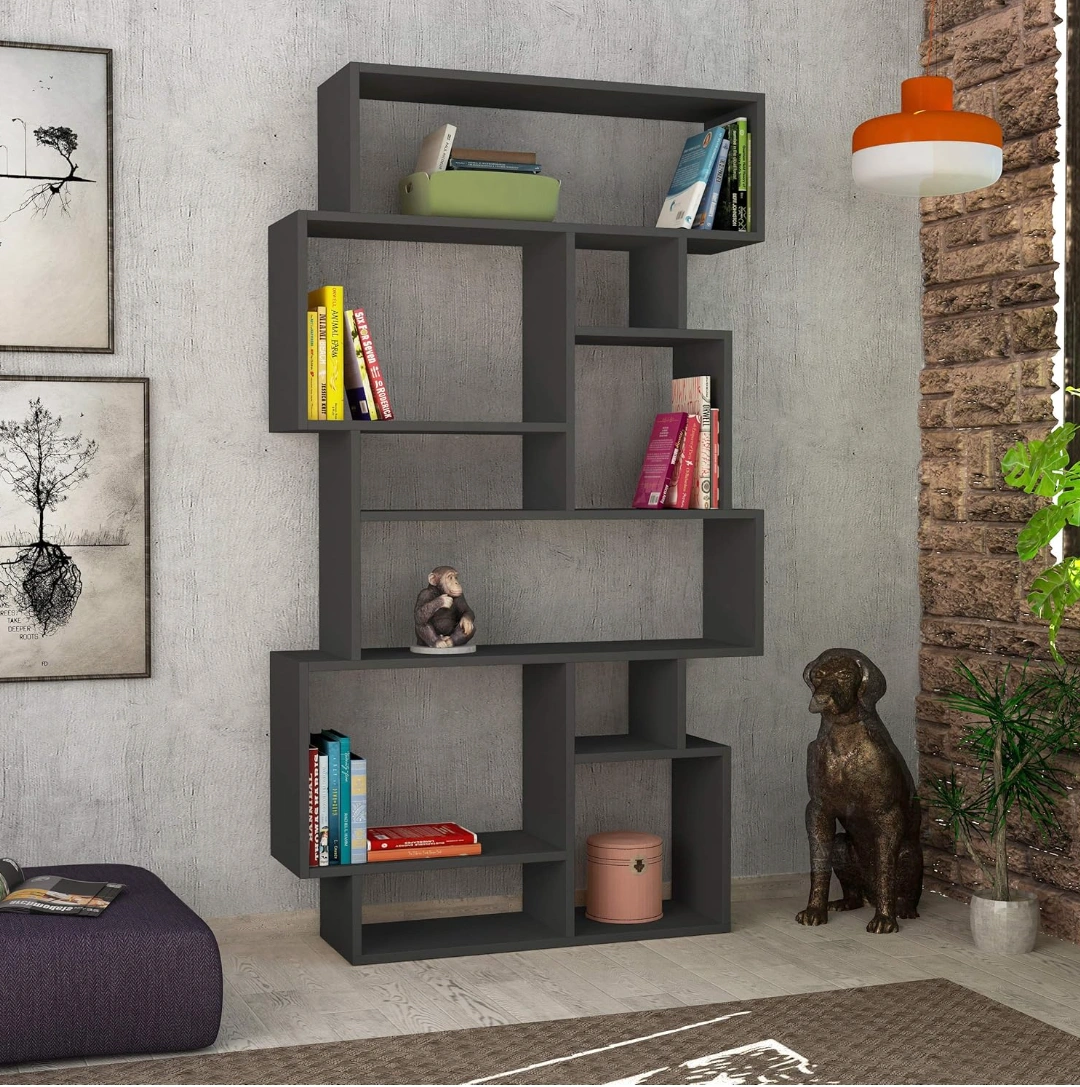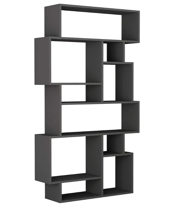 Stylish and functional modular bookcase. Multiple shelves offer ample storage. Dark grey finish. Assembled dimensions: 96cm W x 25.5cm D x 188.5cm H. Great for books, decor, and more.