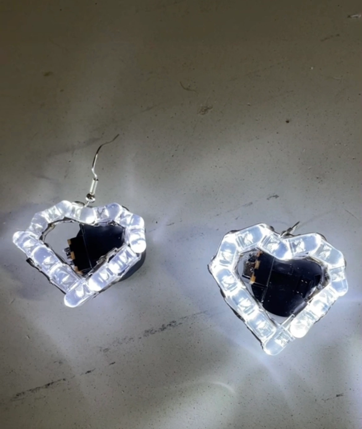 65Pair of LED heart-shaped earrings. Silver hooks. Unique design. Great for parties or concerts.