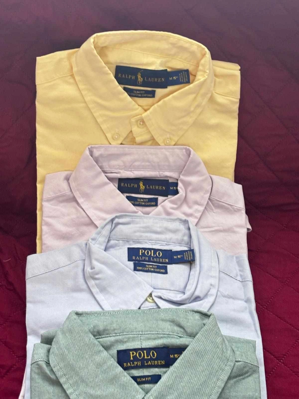 Bundle of four men's slim fit Oxford shirts. Various colours. 100% cotton.