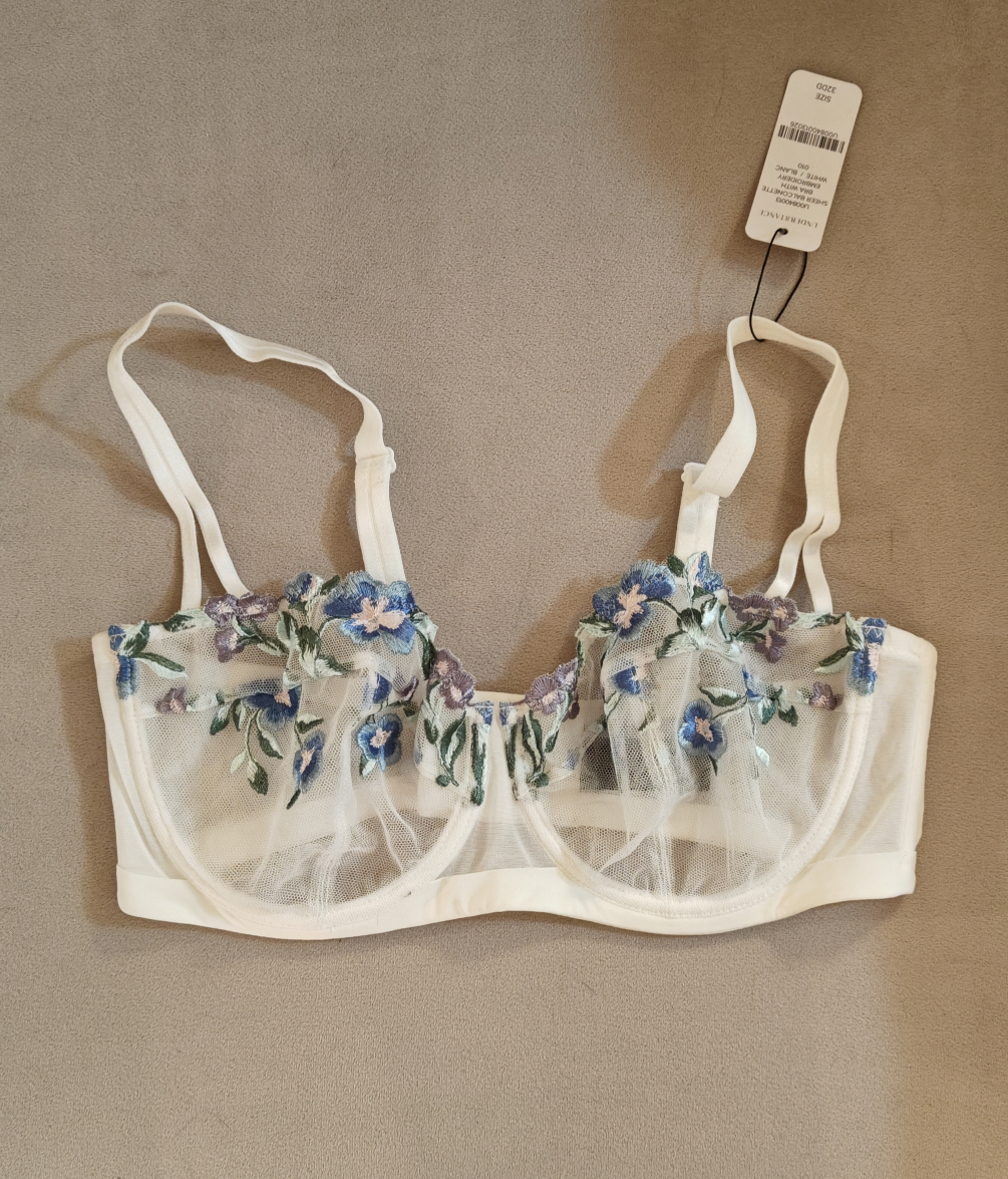 Embroidered White Floral Balconette Bra
