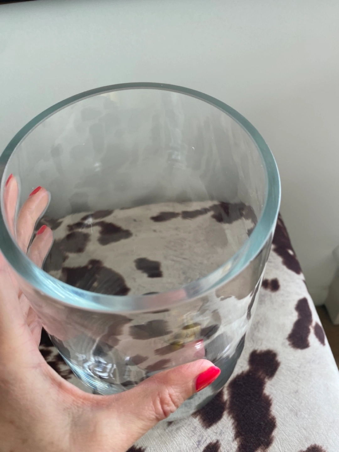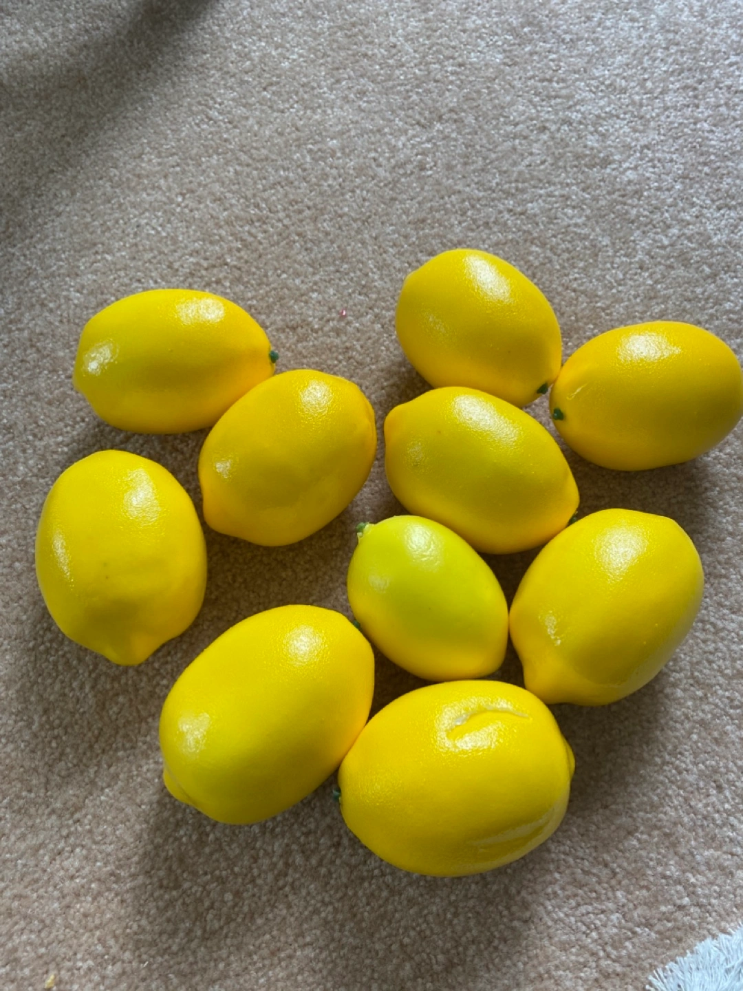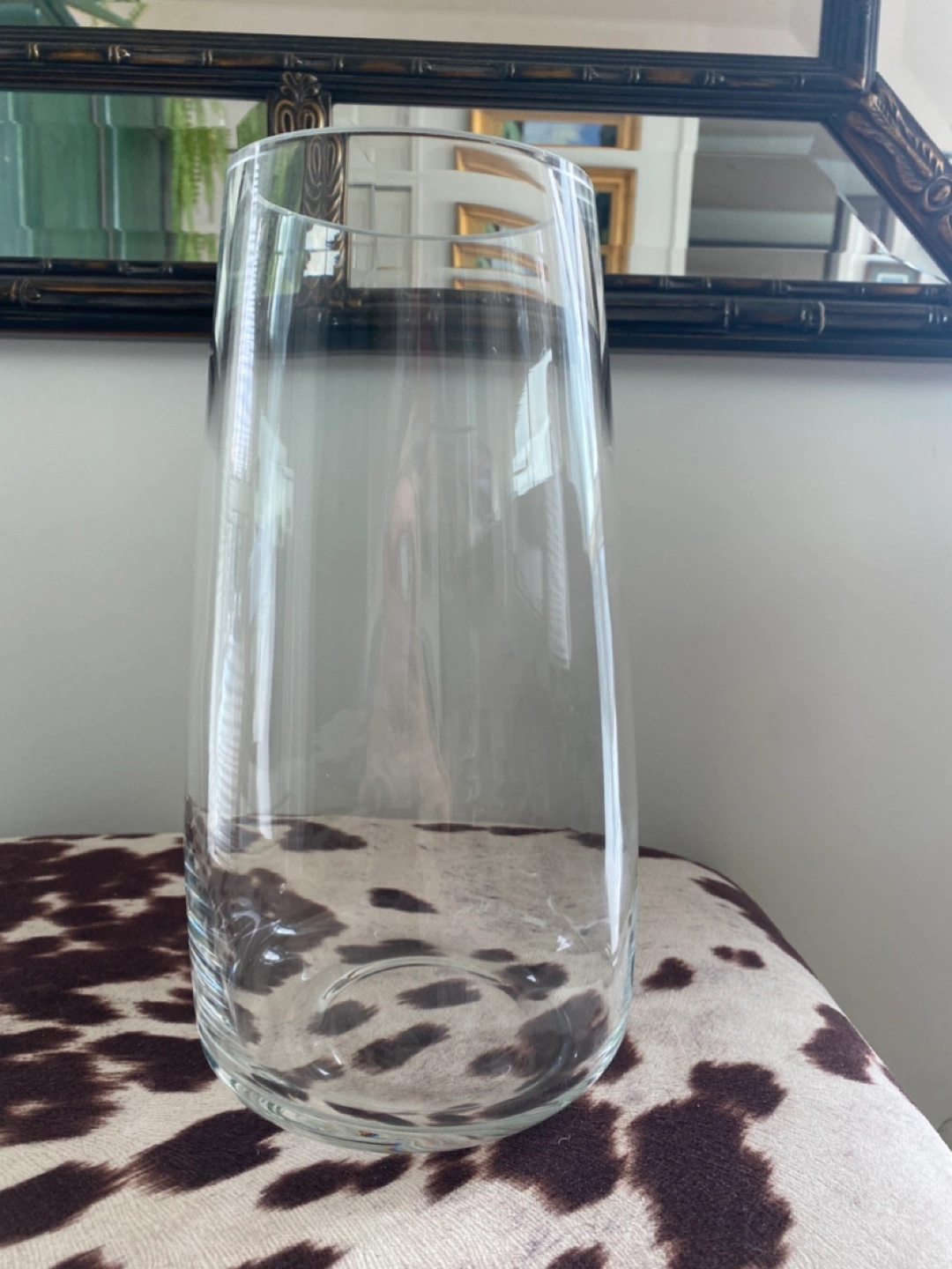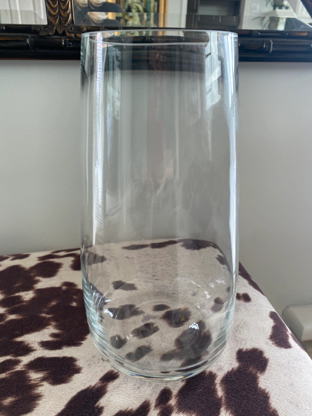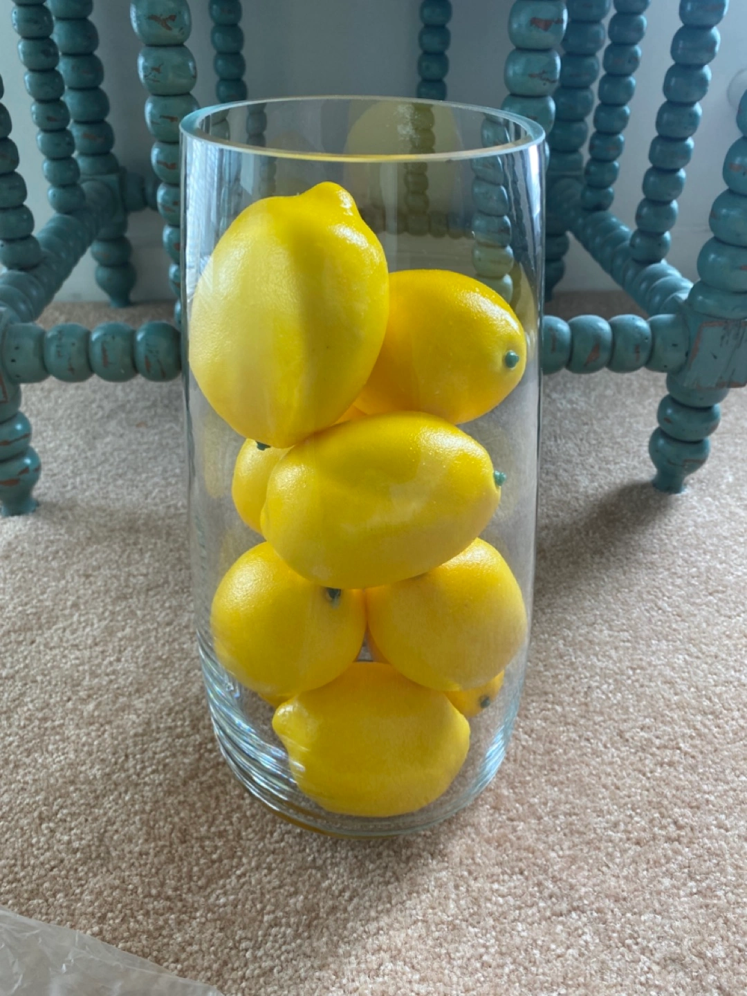 Tall clear glass vase. Perfect for home decor or floral arrangements. Elegant and simple design. Thick Glass high quality with 10 fake lemons ⭐️.