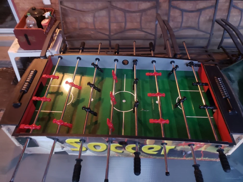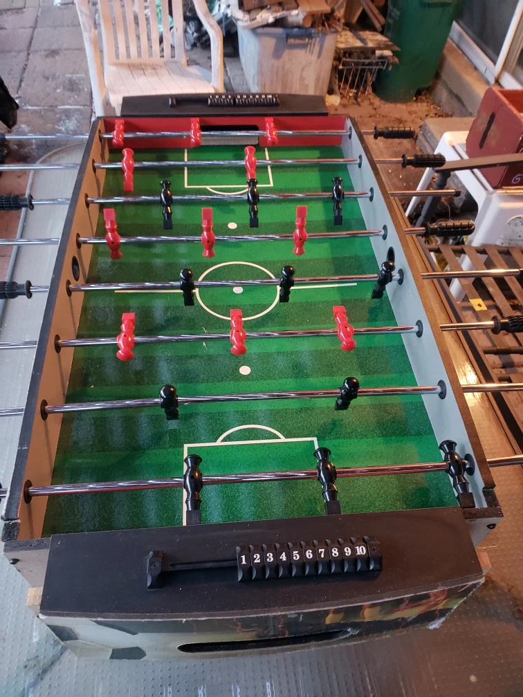 Fun foosball table. Great for family game nights. Shows some wear. Includes scoring system.