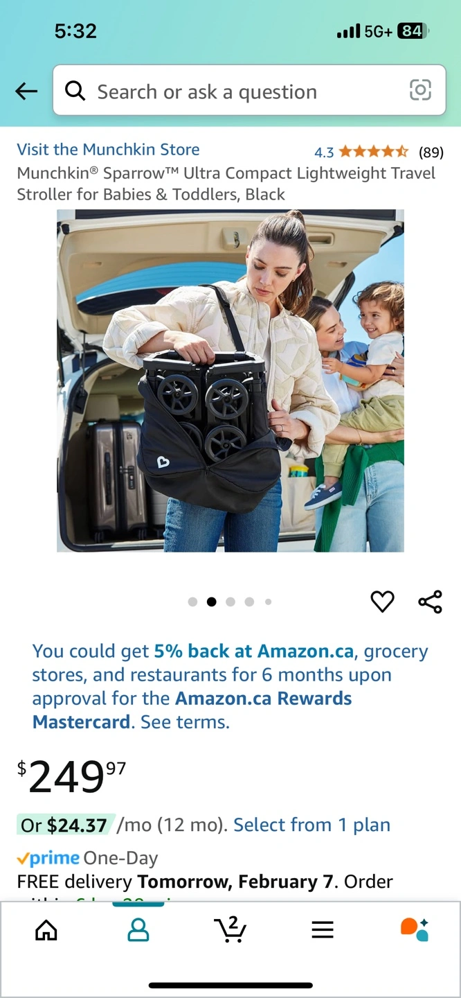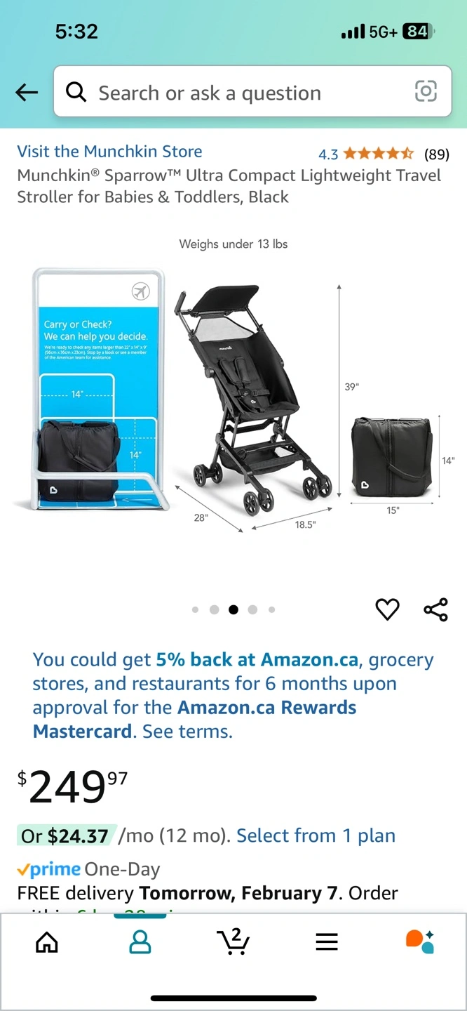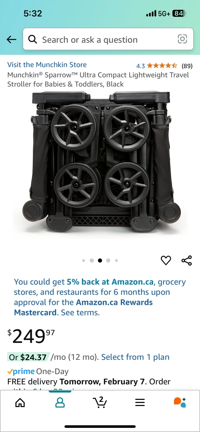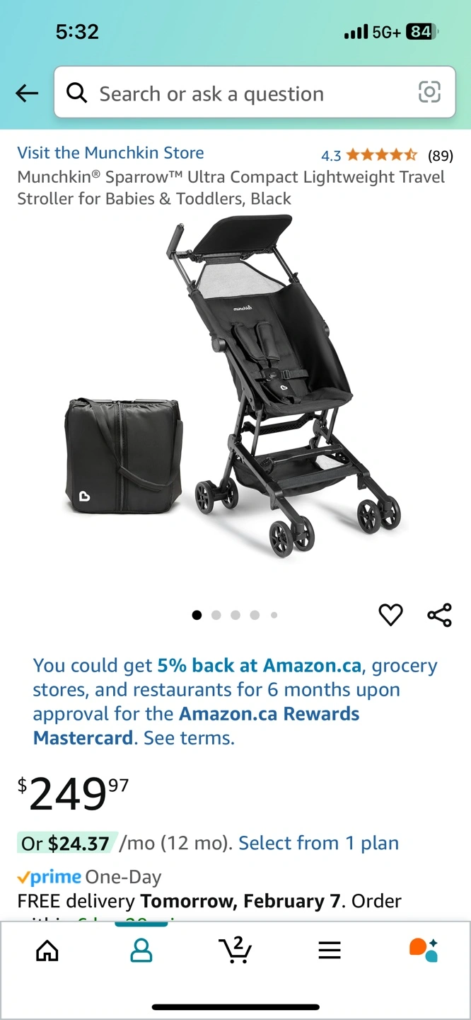 Munchkin Sparrow Ultra Compact Lightweight Travel Stroller