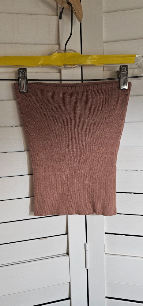 Dusty rose tube top. Ribbed material. Approximately 10 inches across and 12 inches long. Great for layering or wearing on its own.