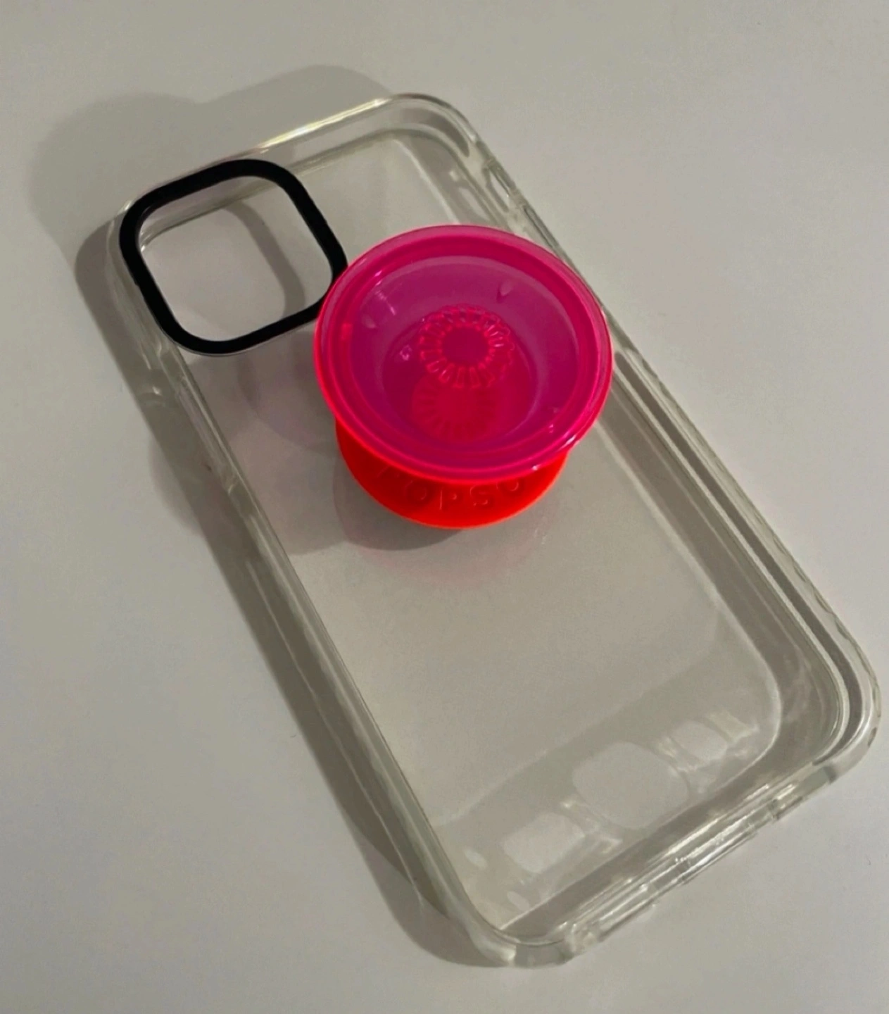 Clear case with pink pop socket