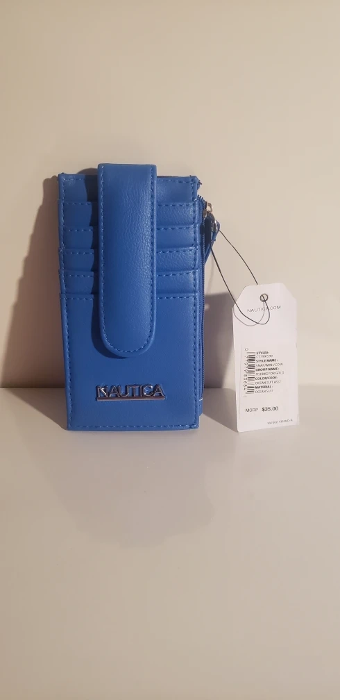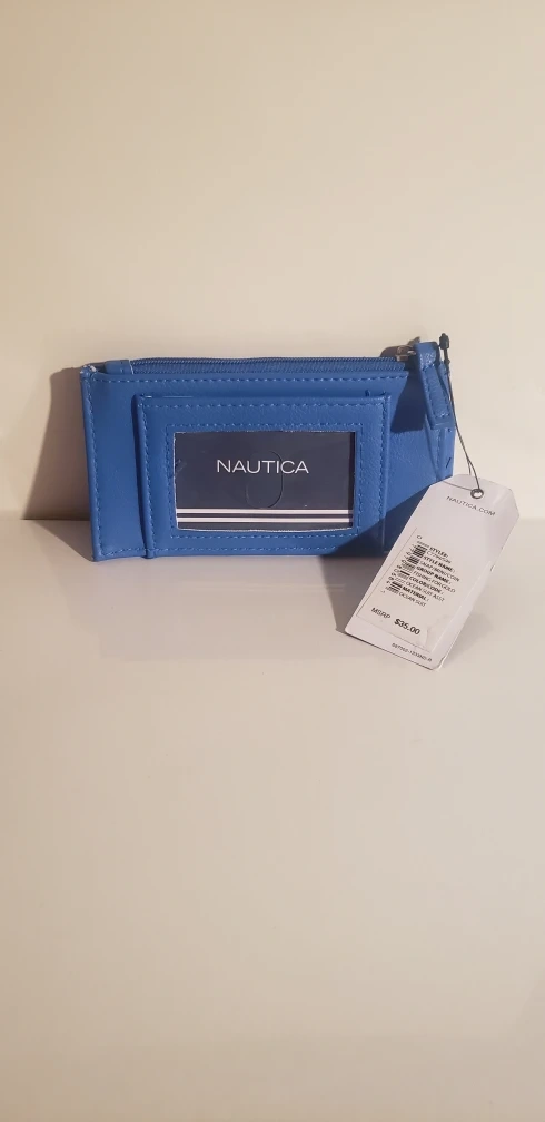 New Nautica cardholder. Blue leatherette. Multiple card slots. Zippered coin pouch. ID window. Cash only for pickup in Queens NY