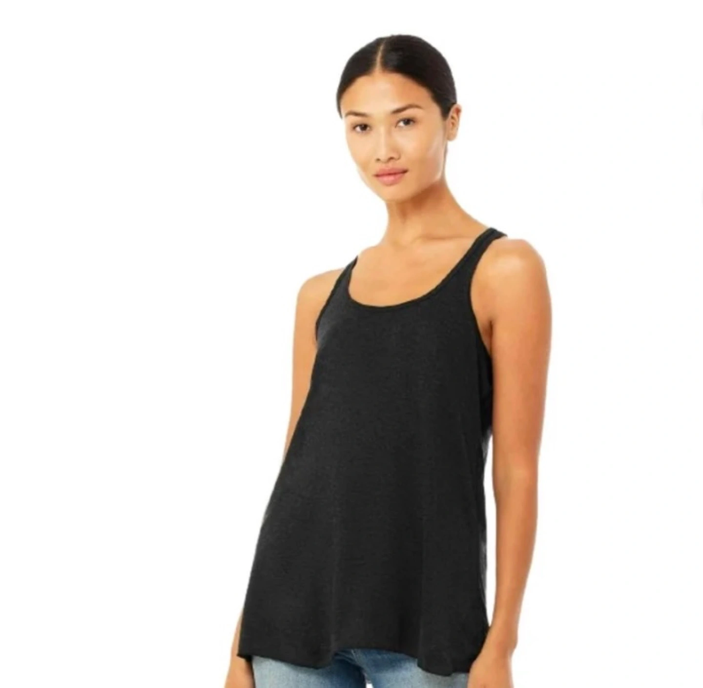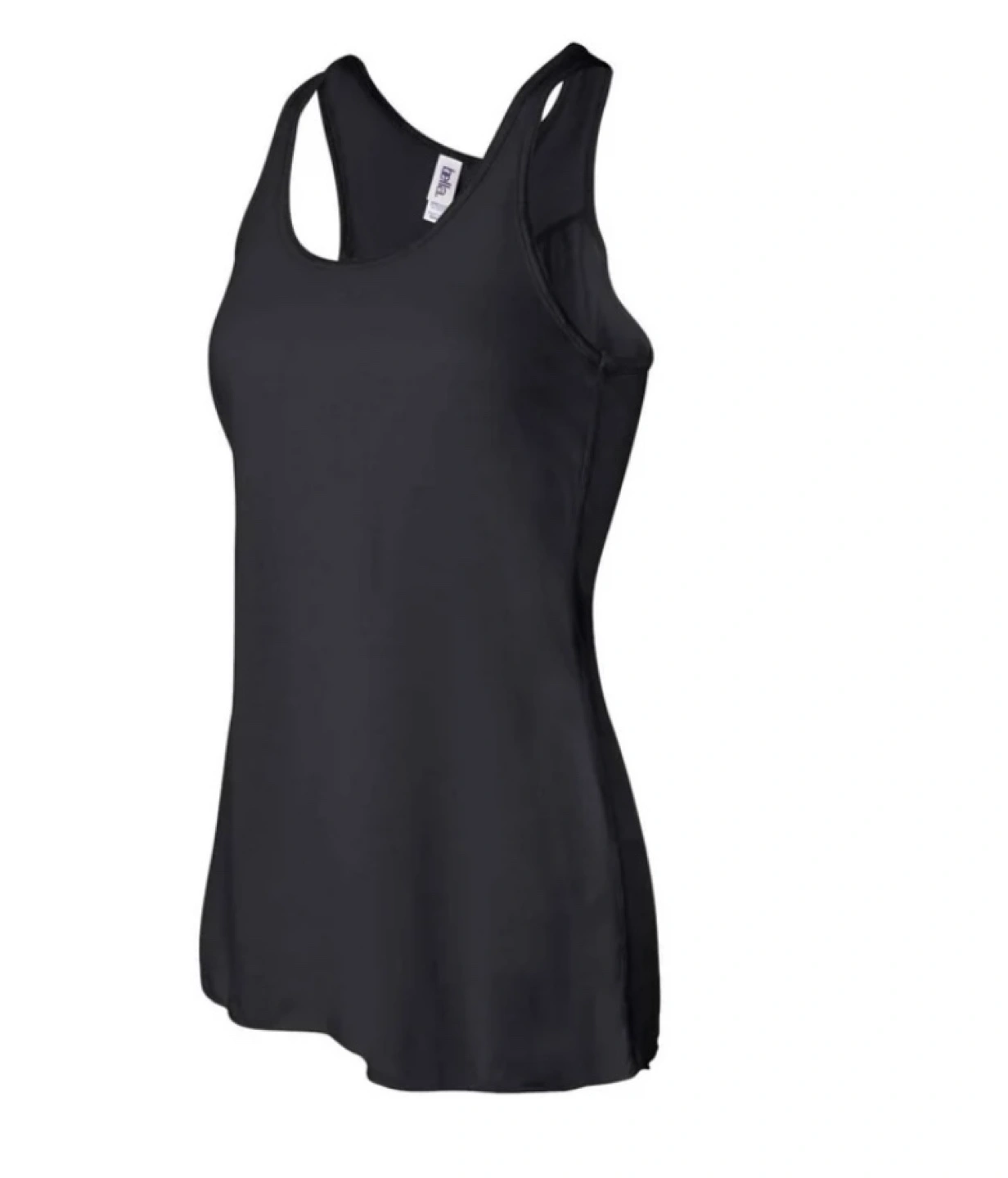 Black women's racerback sport tank top. Relaxed fit. Great for layering or wearing on its own. Soft and comfortable material.