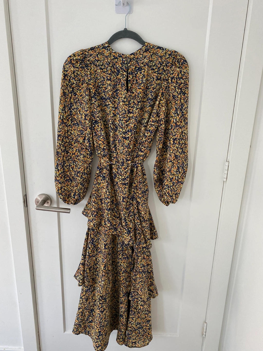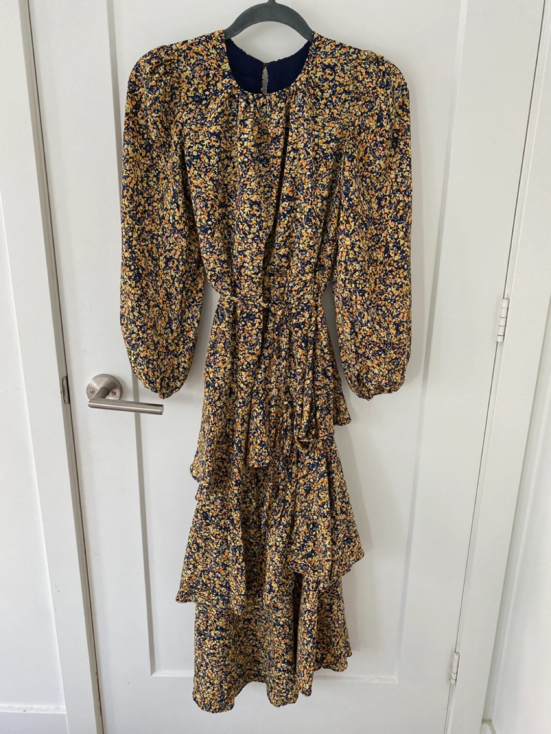 Floral Midi Dress with Tiered Skirt - Size Xs