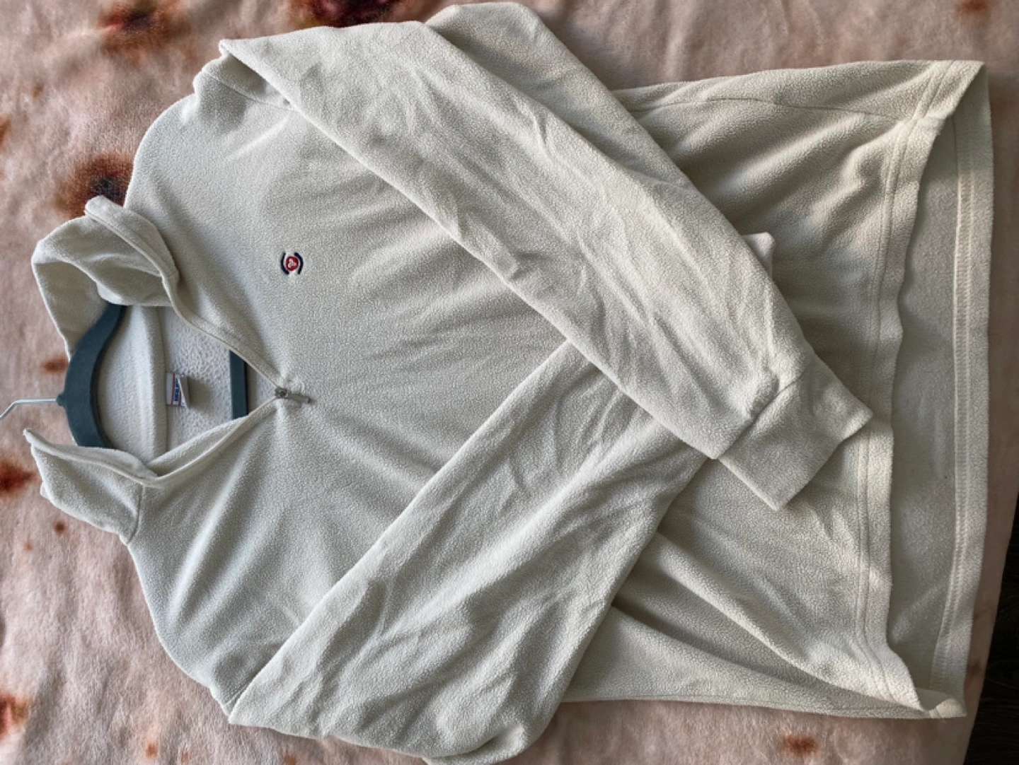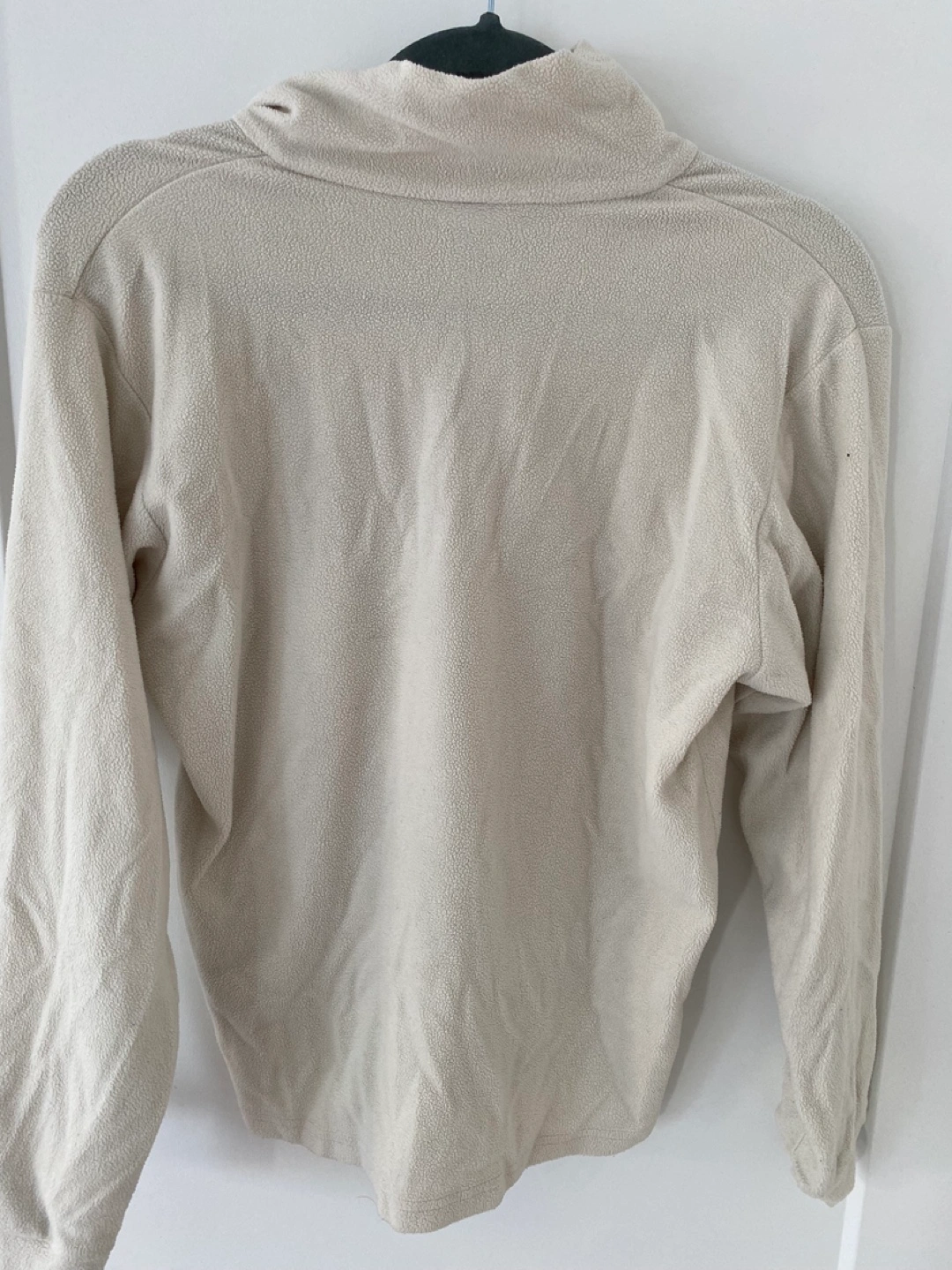Cream coloured fleece pullover. Quarter zip. Long sleeves. Size XL. Good condition.