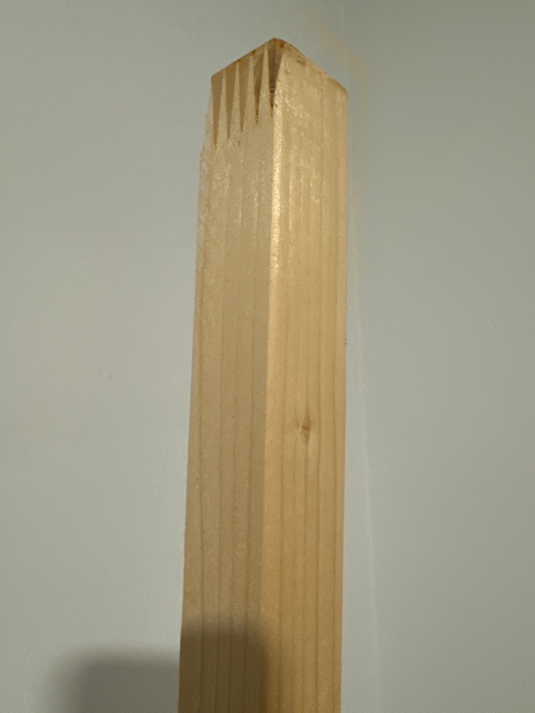 Square dowel, light-coloured wood. Suitable for various crafting or building projects. Untreated, ready for your finishing touch.