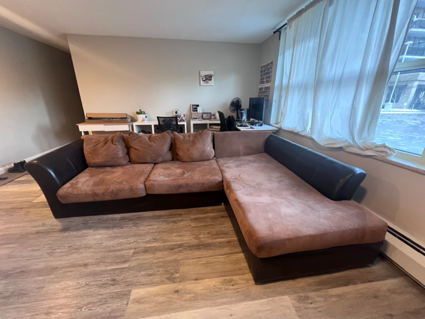 Selling my L-shaped Brown coloured sectional sofa in good condition. It has been used for over six months and is still comfortable and sturdy. Perfect for a cozy living space! I’m only selling it because my house is a little smaller for this size, otherwise, it’s a great piece!
