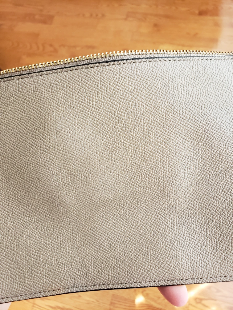 The back of the wristlet has two spots of slight discolouration. These spots are slightly lighter than the original leather colour. I tried to show this in the attached picture. It's hard to see.