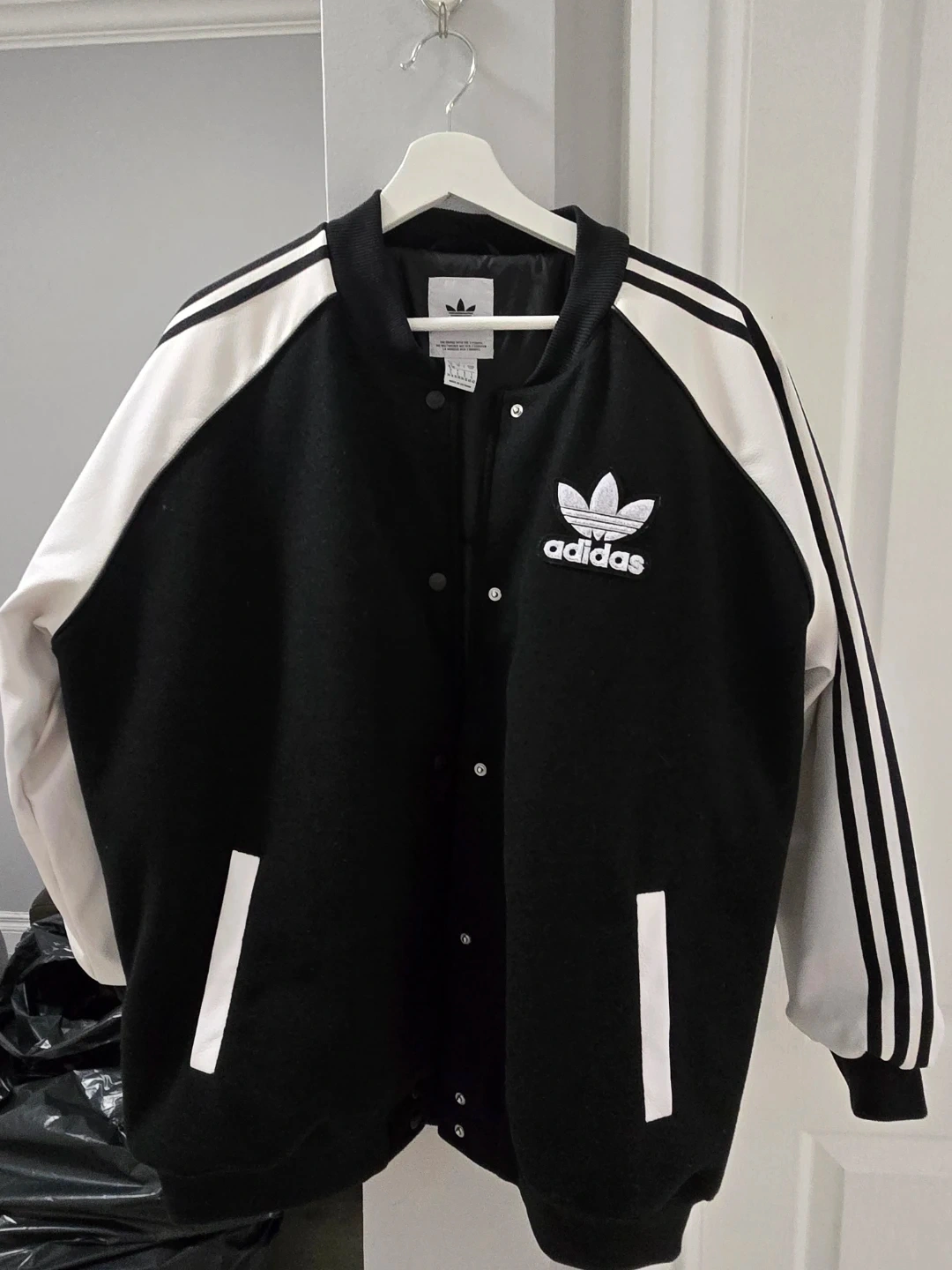 Buy & SellAdidas Varsity Jacket Black WhiteAdidas Varsity Jacket Black White$40Adidas varsity jacket. Black body with white sleeves. Features the classic Adidas trefoil logo. Made in Vietnam.ConditionLike newSizeLBrandAdidasWHERE TO MEETcliff ave BurnabyView MapSELLERverifiedRAMAHalifax Park1568 reviews0 chats·0 favorites·39 viewsSEND CHAT TO SELLERHi RAMA! I’m interested in your listing.Hi RAMA! I’m interested in your listing.Get the Karrot app to chatSign In to chat