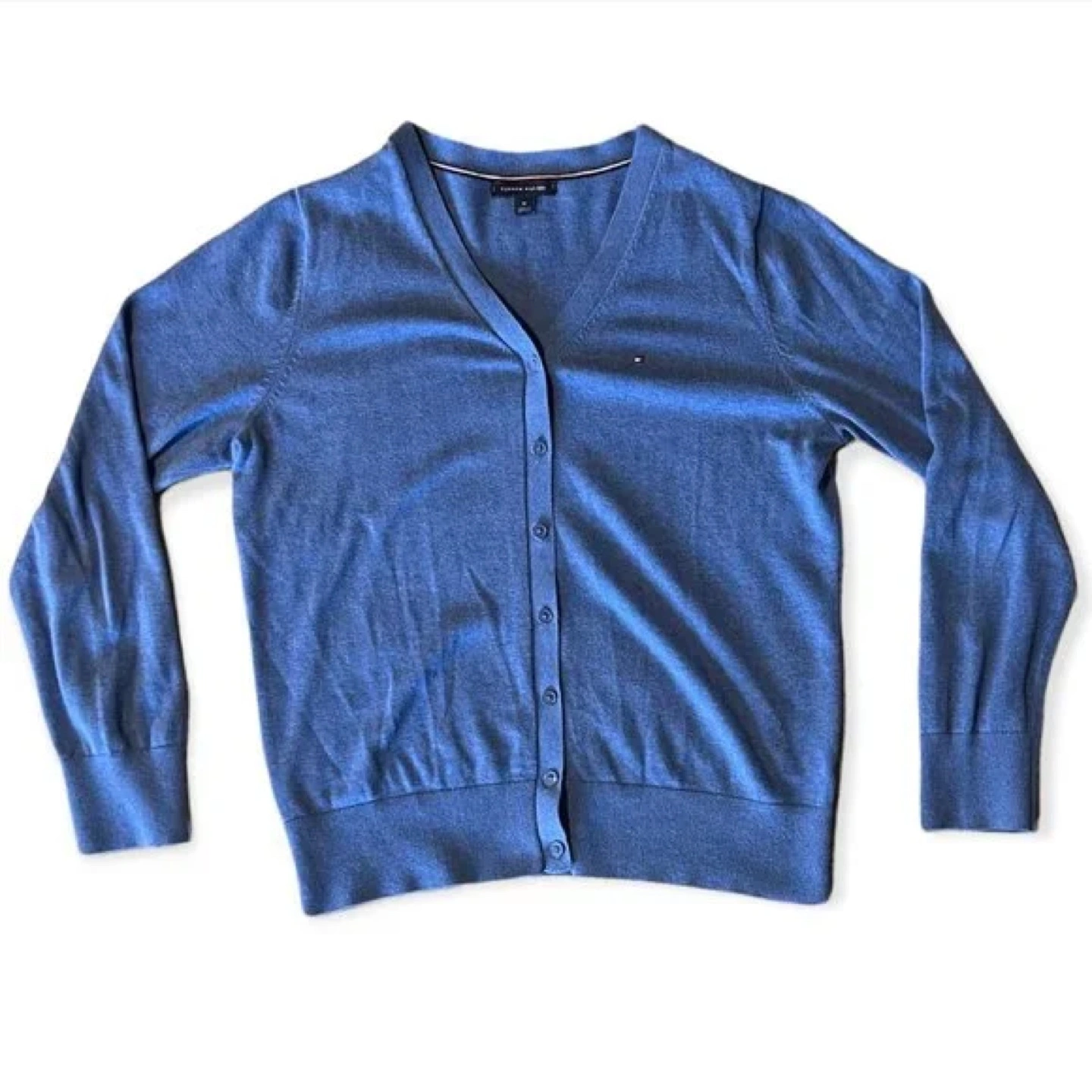 Women's Tommy Hilfiger cardigan. Blue colour. Medium size. Long sleeves. Button closure. Excellent pre-owned condition.