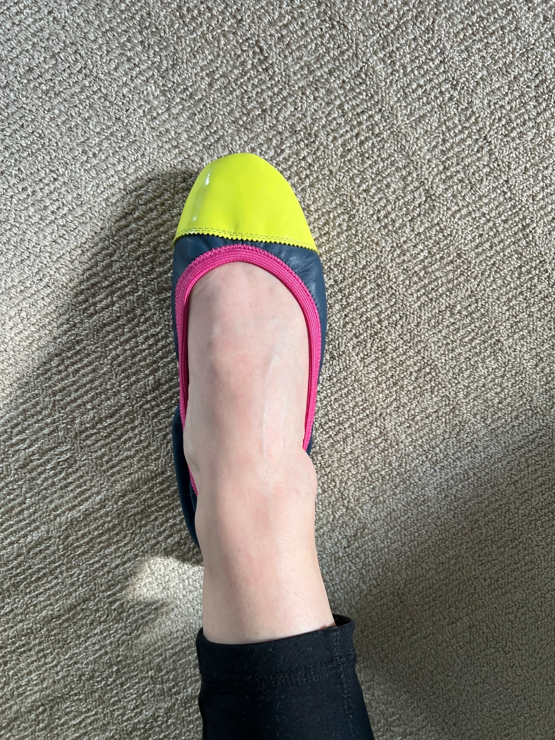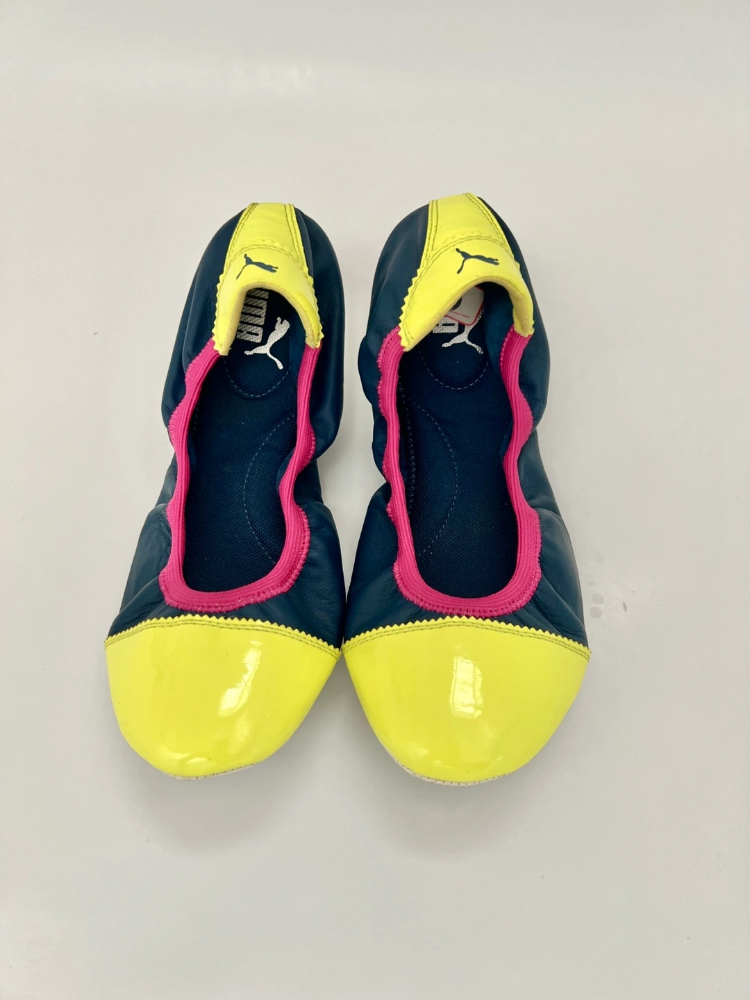 Pair of Puma women's slip-on ballet flats. Colour block. Perfect condition. I had a pair and loved them. My daughter bought these for me when she saw them on sale but they aren’t my size. I never wore them. Markings on bottom from store try-on’s. Purchased from The Bay on sale. Original $100 down to $70.