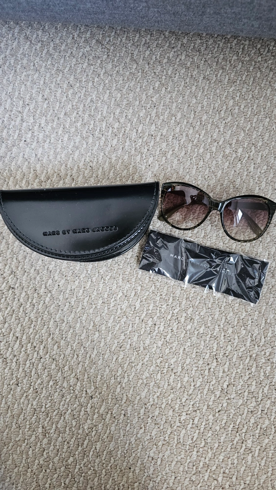 40Women's sunglasses. Brown gradient lenses. Olive green and black striped frames. Includes hard shell case and cleaning cloth. Gently used.