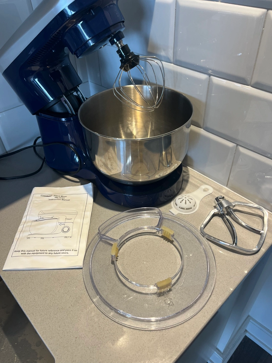Five speeds stand mixer with stainless steel bowl Includes whisk and beater attachments, and plastic cover In great condition, only used a handful of times