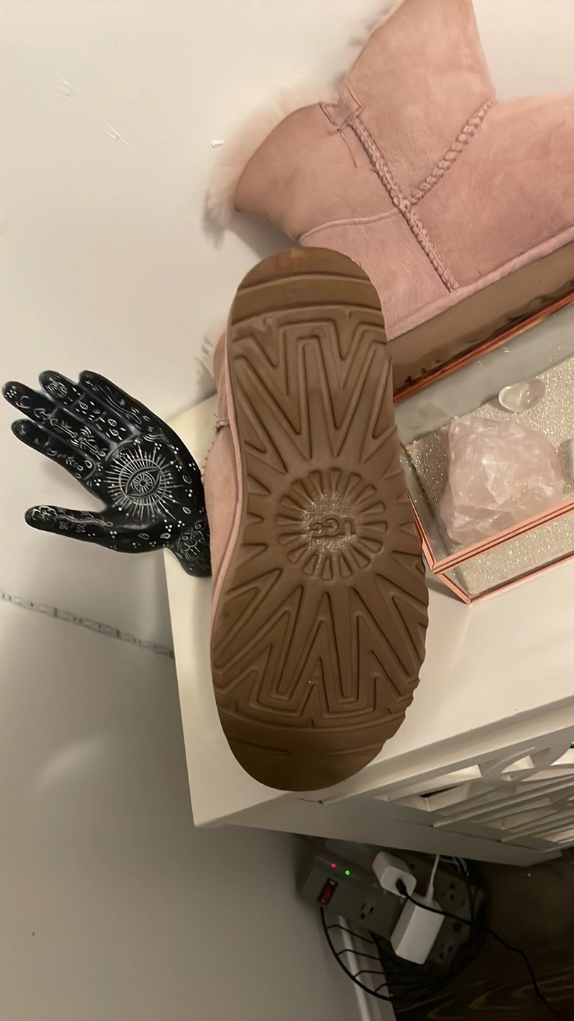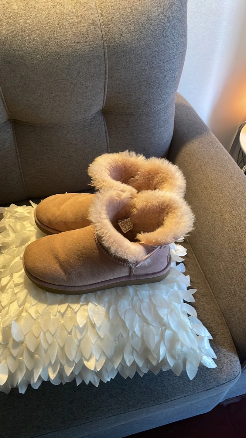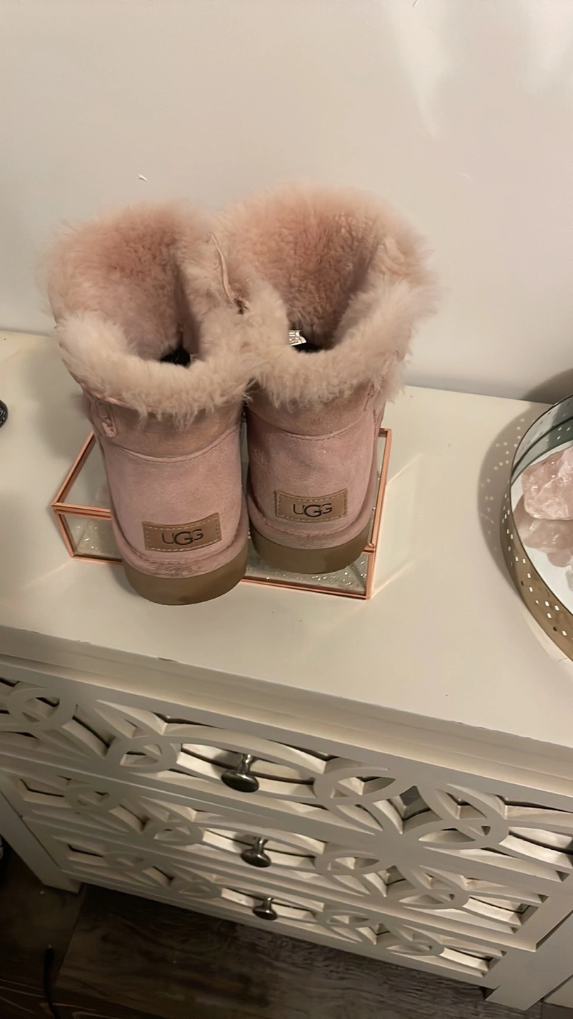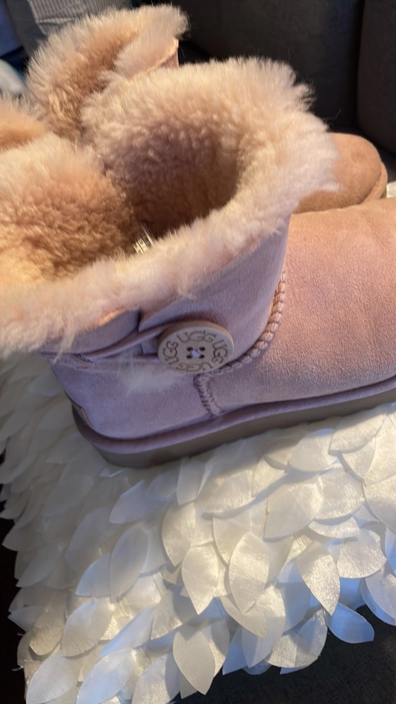 Women's UGG Mini Bailey Button boots. Blush pink suede. Classic UGG style. Sheepskin lining. Excellent condition.