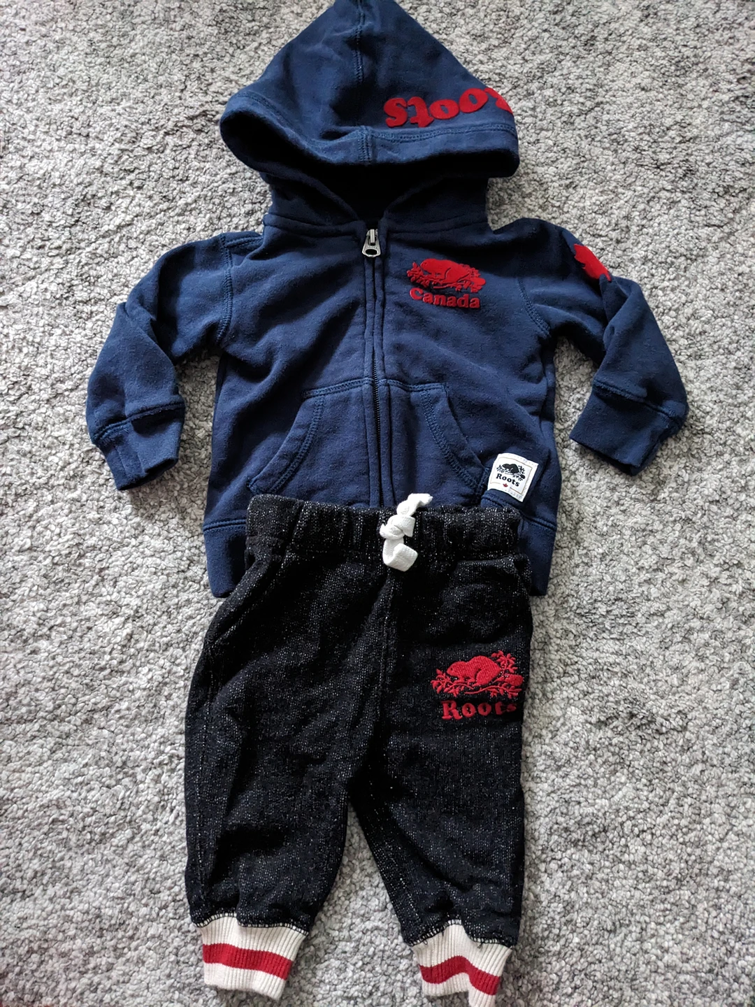 Roots hoodie and pants set. 3-6 months. No rips stains or tears. From non-smoking non-pet and safe environment. Pickup location: Bayview/John